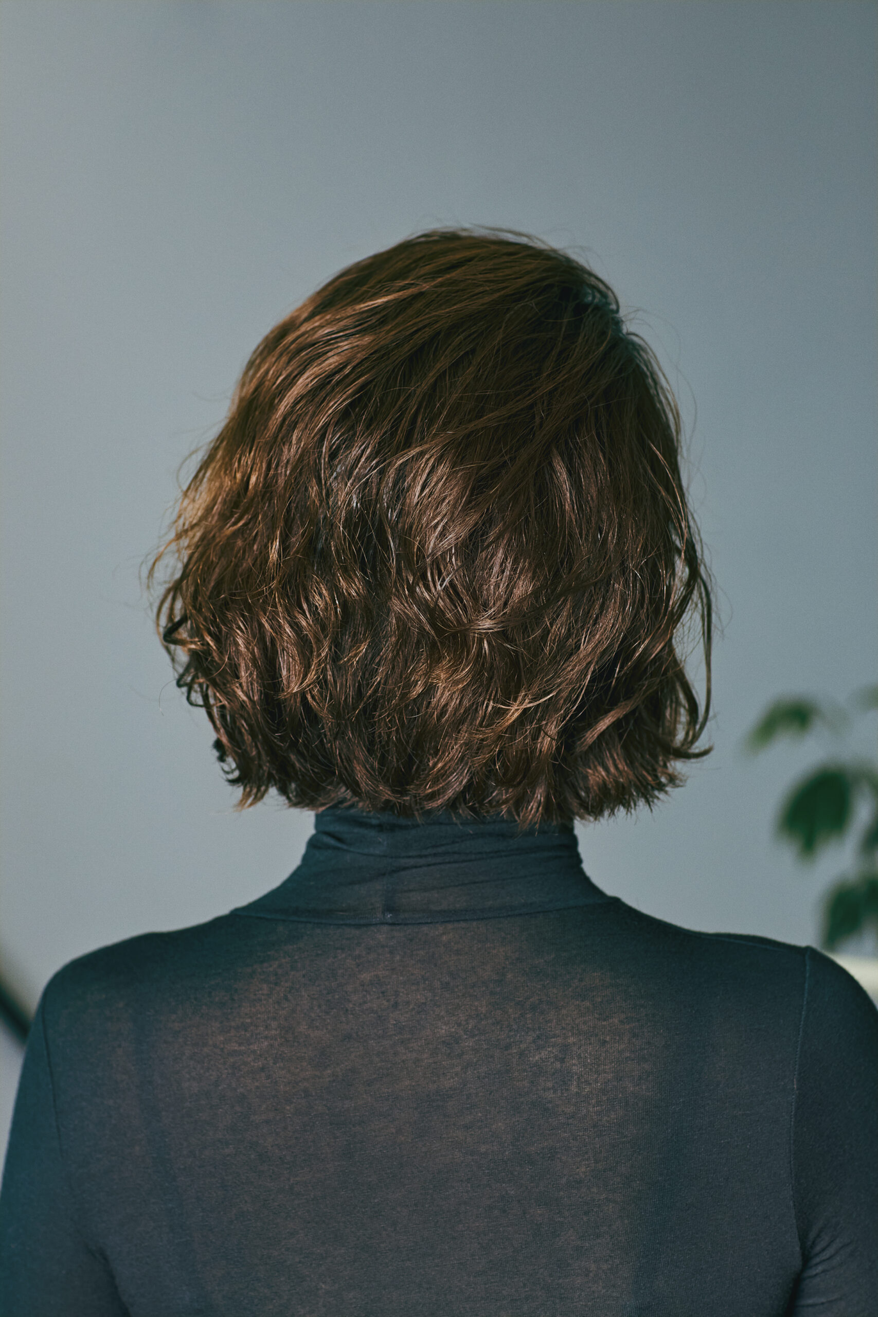 「シーズンごとに変わる服に合わせて髪のバランスを調整したい、という大草さんの要望に応えつつ、季節によって変動する気温や湿度に対応してクセをうまく扱うためにも、そのときどきで後頭部の髪の厚みに変化を持たせています。最近は、後ろの量感を少し薄めにしてボリュームを落ちつかせ、軽やかな表情に。ここが厚くなって全体の重心が下がりすぎると、トップがペタッと潰れ、顔が長く見えてしまいがちなんです。バックの量をアジャストすれば、頭頂部のヘアもほどよくふんわりまとまります」