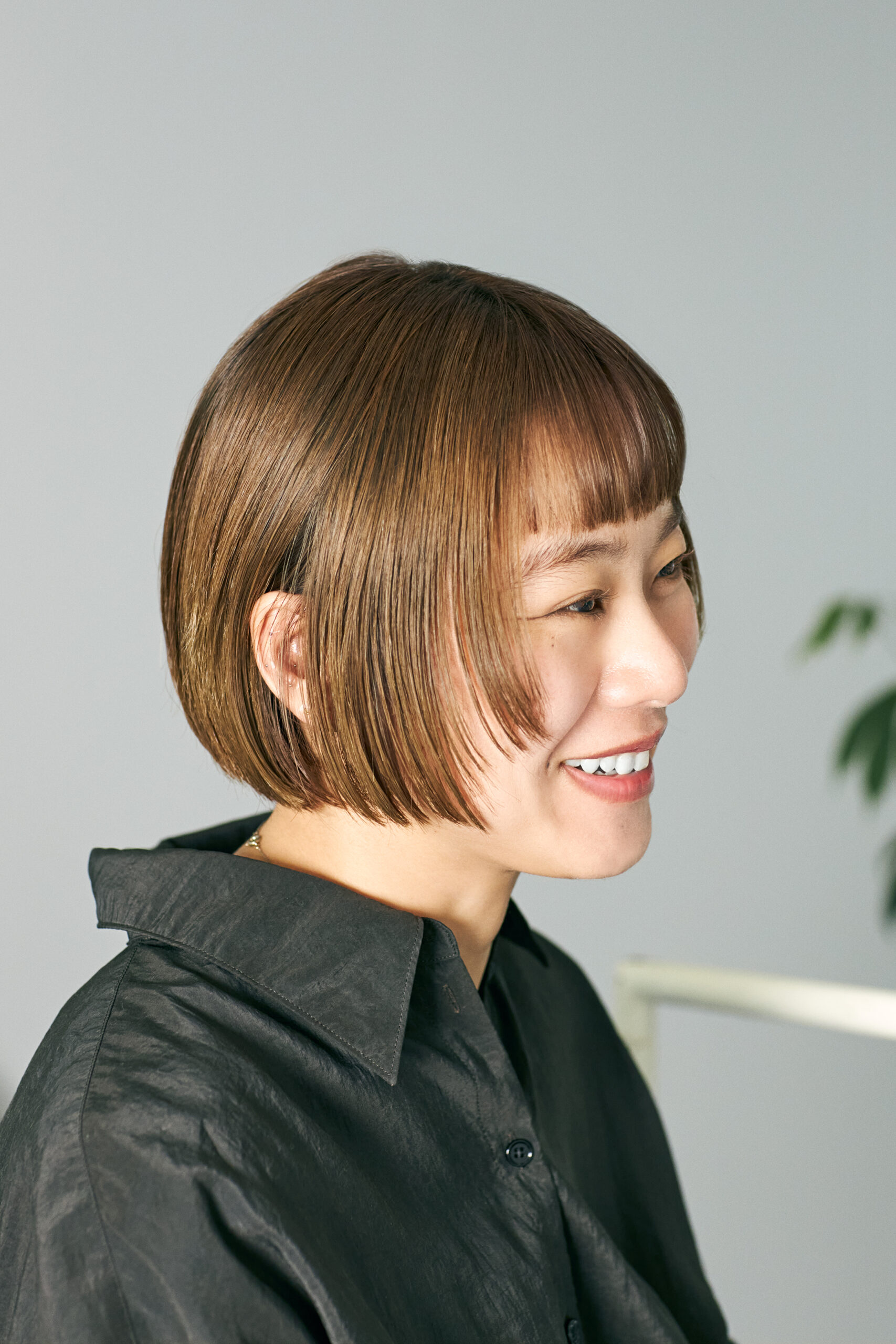 「前髪はここ最近、頑張って伸ばしてきたところだったのですが、“ボブスタイルにするなら切っちゃえ!”と、思いきってカットすることに。ただ、細かい長さや形はおまかせ。色味も含めて“こんな雰囲気になりたい”という参考写真を見せ、あとは髪質や頭の形に合わせてよきようにしていただくというやり方を取ってもらっています」