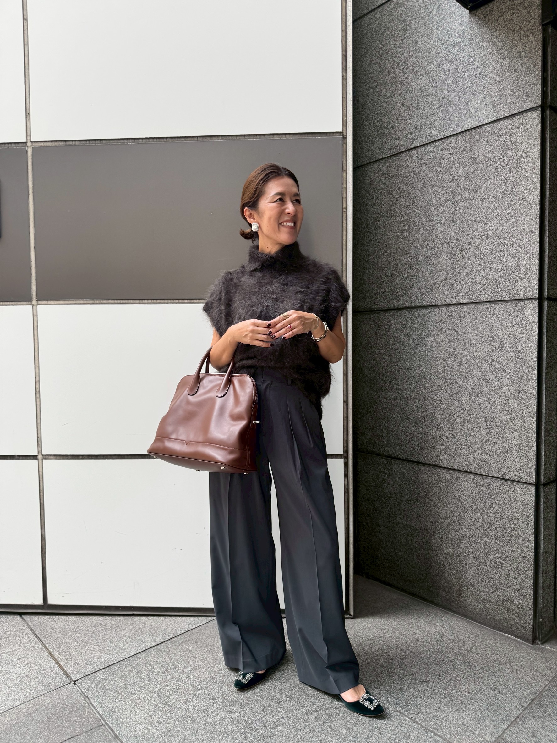 ガリャルダガランテのオリジナル。肉感を拾わないニットの、シャープ感と、究極のシンプリシティが見事なマッチング。大人の服になりました。