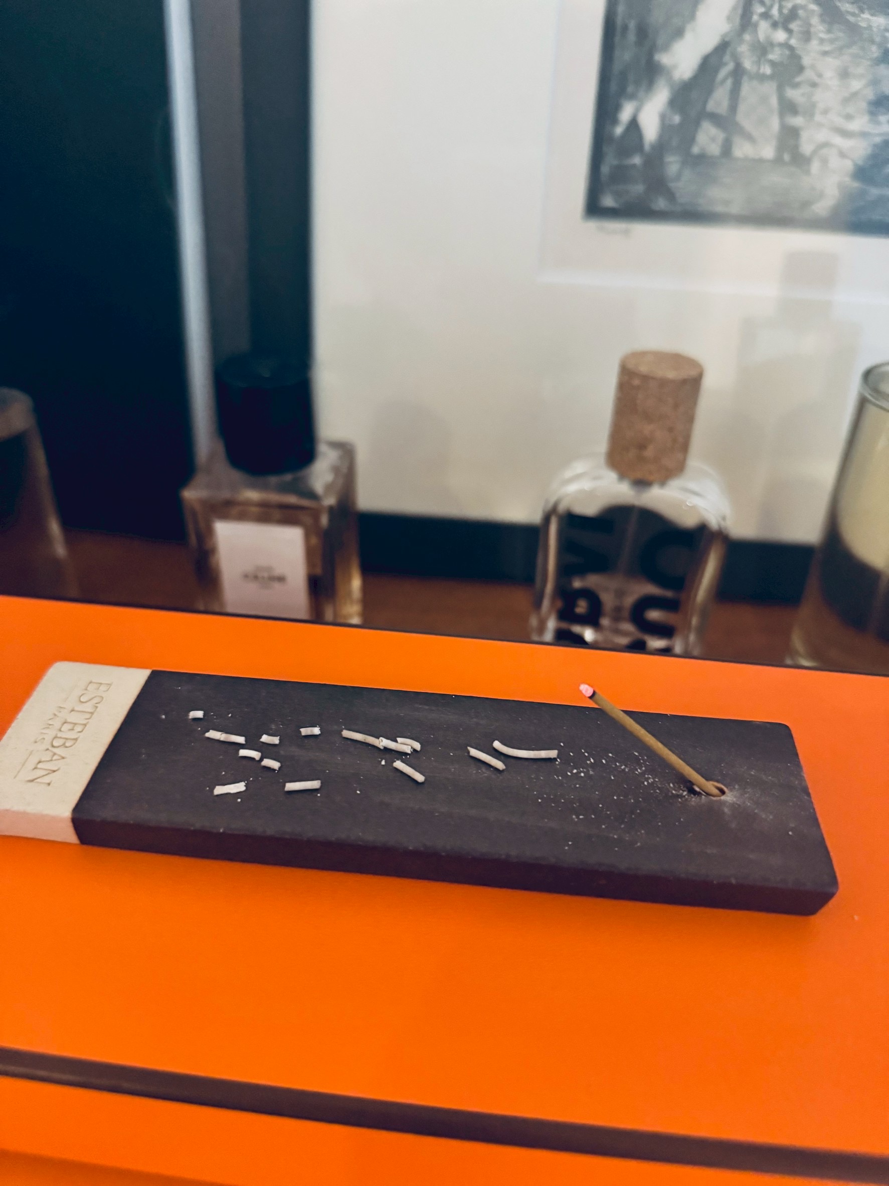 そして寝室は、「夜眠りに落ちる瞬間の景色がきれいだと、睡眠の質が良くなる」と聞いてから、実践するように。変な話、ベッドに寝た時に目に入るところだけでも良い。景色は無意識を司り、無意識が重なって意識になるな、と思っているので、全部はできなくても、ここだけは、と思っています。このあたりのことは、プレミアム会員限定の「AMARC RADIO STATION」でもお話ししていますので、是非お聴きくださいね♡あ、最近愛用しているお香は、鳩居堂の「びゃくだん」。少し懐かしいようなまろやかな香りが、本当に落ち着きます。