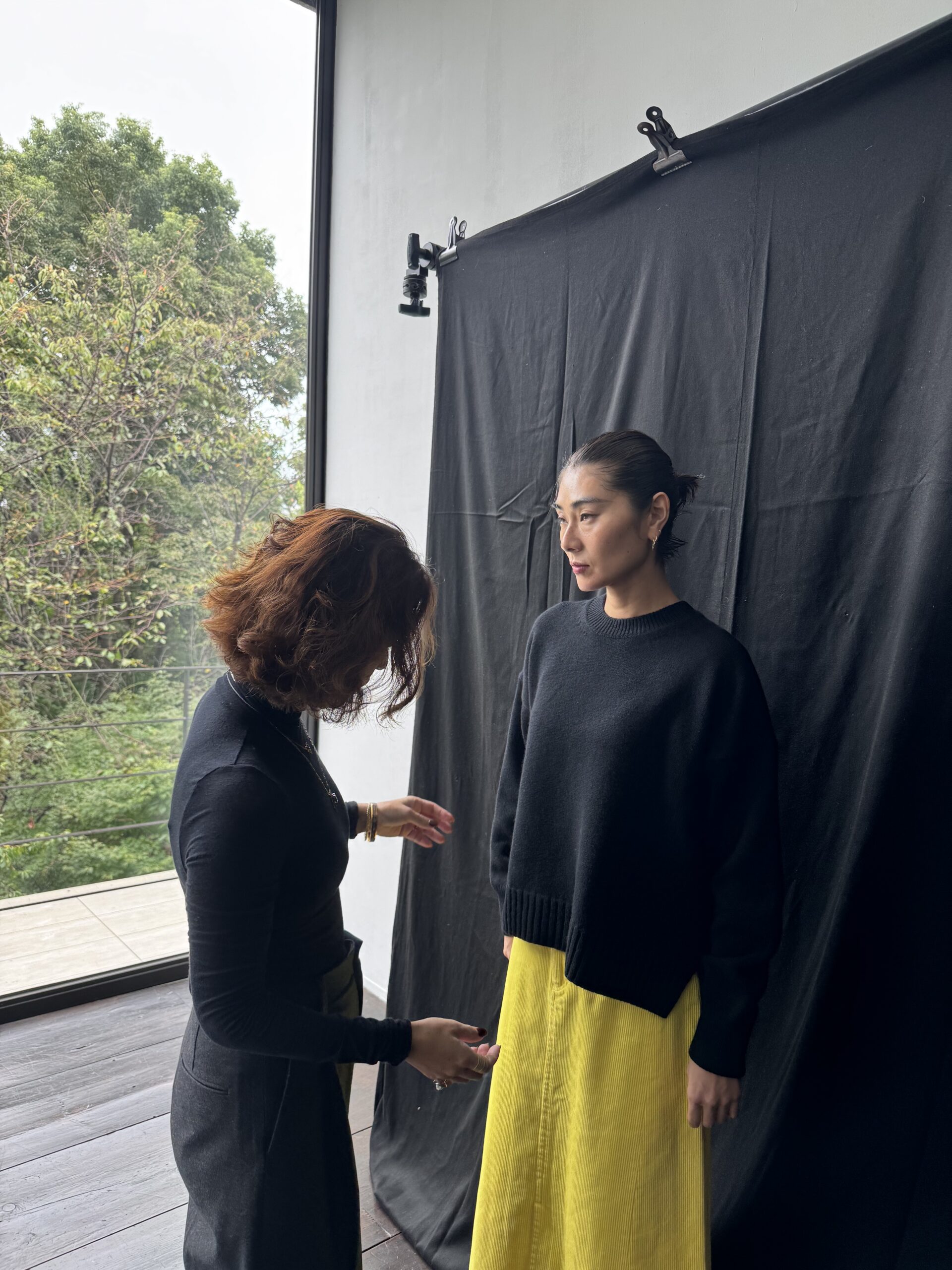 「b」のテーマは、「black」。大人になってから大好きになった色、黒です。リトルブラックドレスや黒のスウェット、そして、昨年とにかく大人気だった、門脇美恵さんによる、テーラードジャケットとトラックパンツ。こちらもブラックで作りました。黒にベストマッチの、イエローやキャメルのラインナップもあって、また、昨年とは違うプレゼンテーションになると思います。
