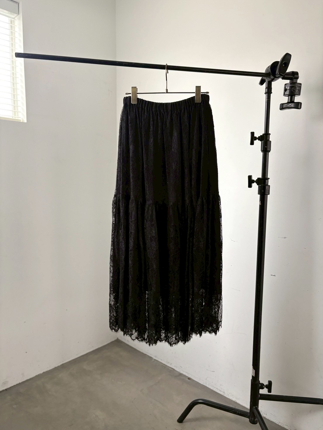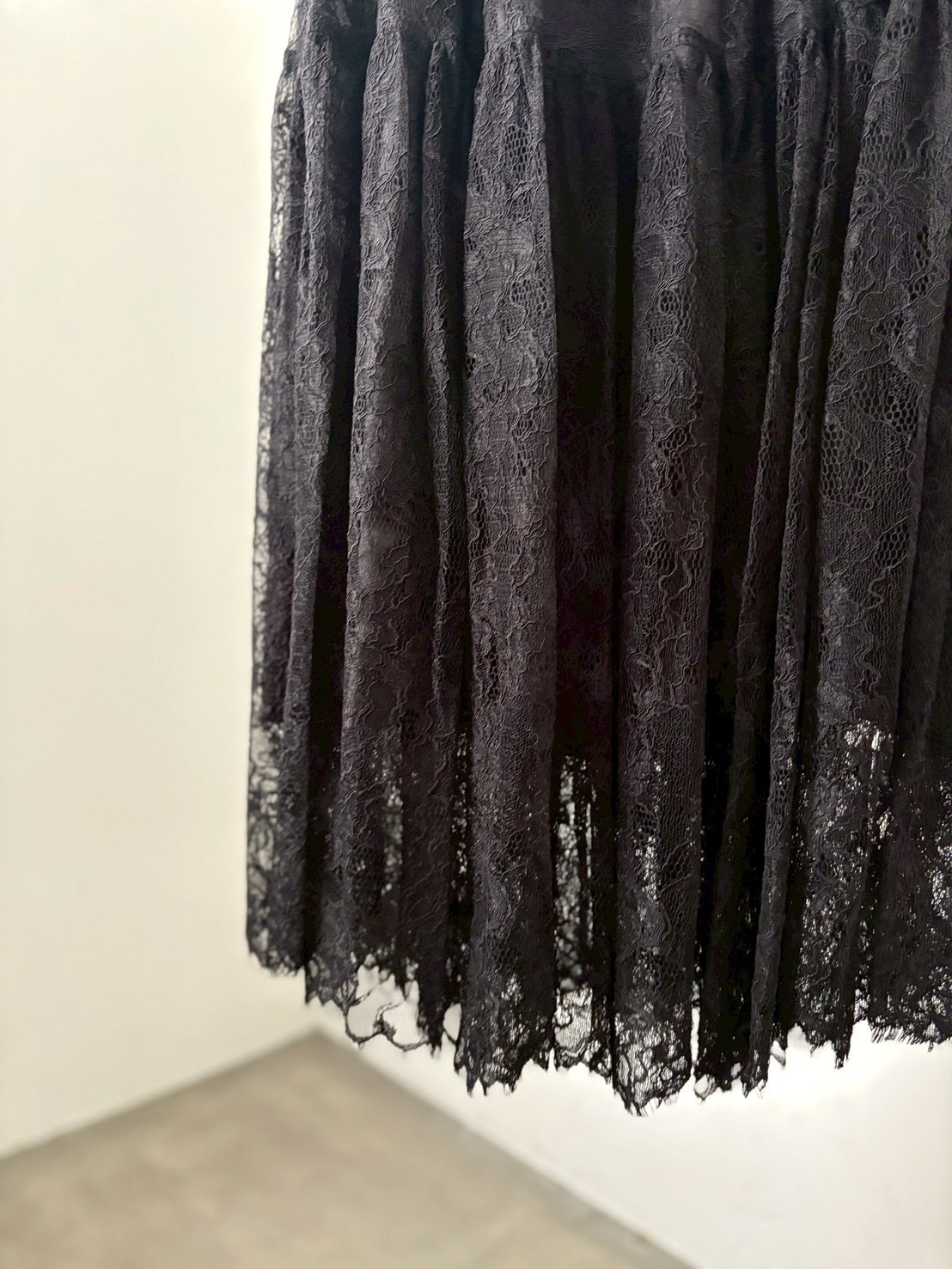 これからのホリディシーズンにも良いなあ、と一目惚れ。レースのスカートは、レースの密度や大きさ、スカラップの使い方などで印象が変わるのですが、これはパーフェクト。ティアードが下すぎないので、コートとのバランスが取りやすいのも決め手になりました。甘さはあるのですが、完璧に大人の顔なので、ざっくりニットやオーバーサイズのジャケットなんかとも合わせる予定です。