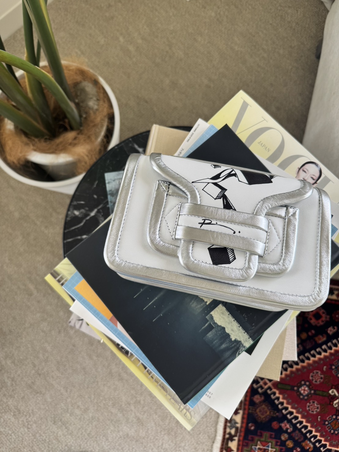 そして! 目玉は、ピエールさん直筆(キャリアのスタートはイラストレーター)のドローイングが施された、アルファ ハンドバッグの販売。白×シルバーの新作に、描かれた独特の世界観は、まさに「持ち運べるアート」。世界に15個! の超限定。4月7日より販売開始ですが、結構、もうなくなっています。(9日現在、大草調べ(笑))アルファ バッグは、カジュアルにも似合うし、パーティにも――モダンで唯一無二のデザインでありながらシーンレスで、実用性も高いのがすごい♡ 「絶対!」と思って、パーティ当日に手に入れましたが、これからたくさん使いたいな、と思っています。
