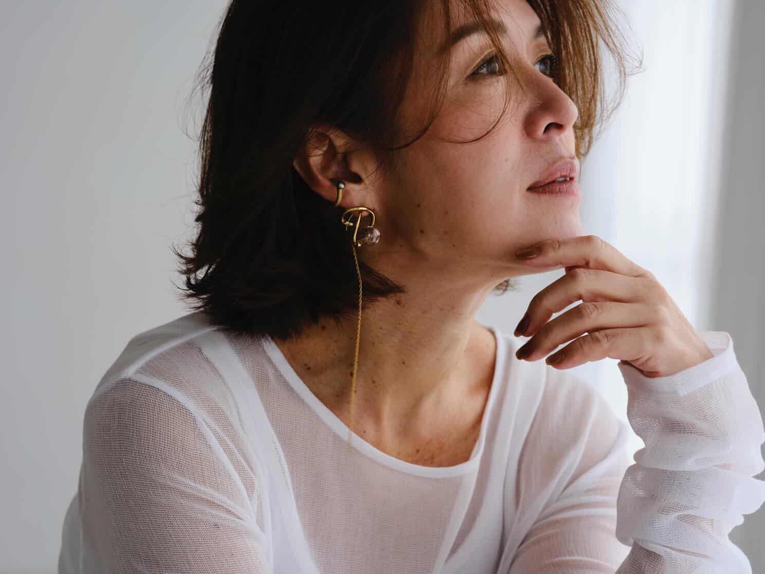 大草さんのクローズアップの写真ばかりで失礼します(笑)。この中の1枚は、インスタのアイコンにも使用させて頂いているのですが、マガジンハウス『クロワッサン』の、ジュエリー特集のページで撮って頂いたものです。カメラマンは、宮濱祐美子さん。誌面を見た時に、「ああ、この写真、温かくて嘘がなくて好きだな」と思ったのですが。その後、別の撮影で彼女にお会いした時に「とても好きな写真でした」とお伝えしました。