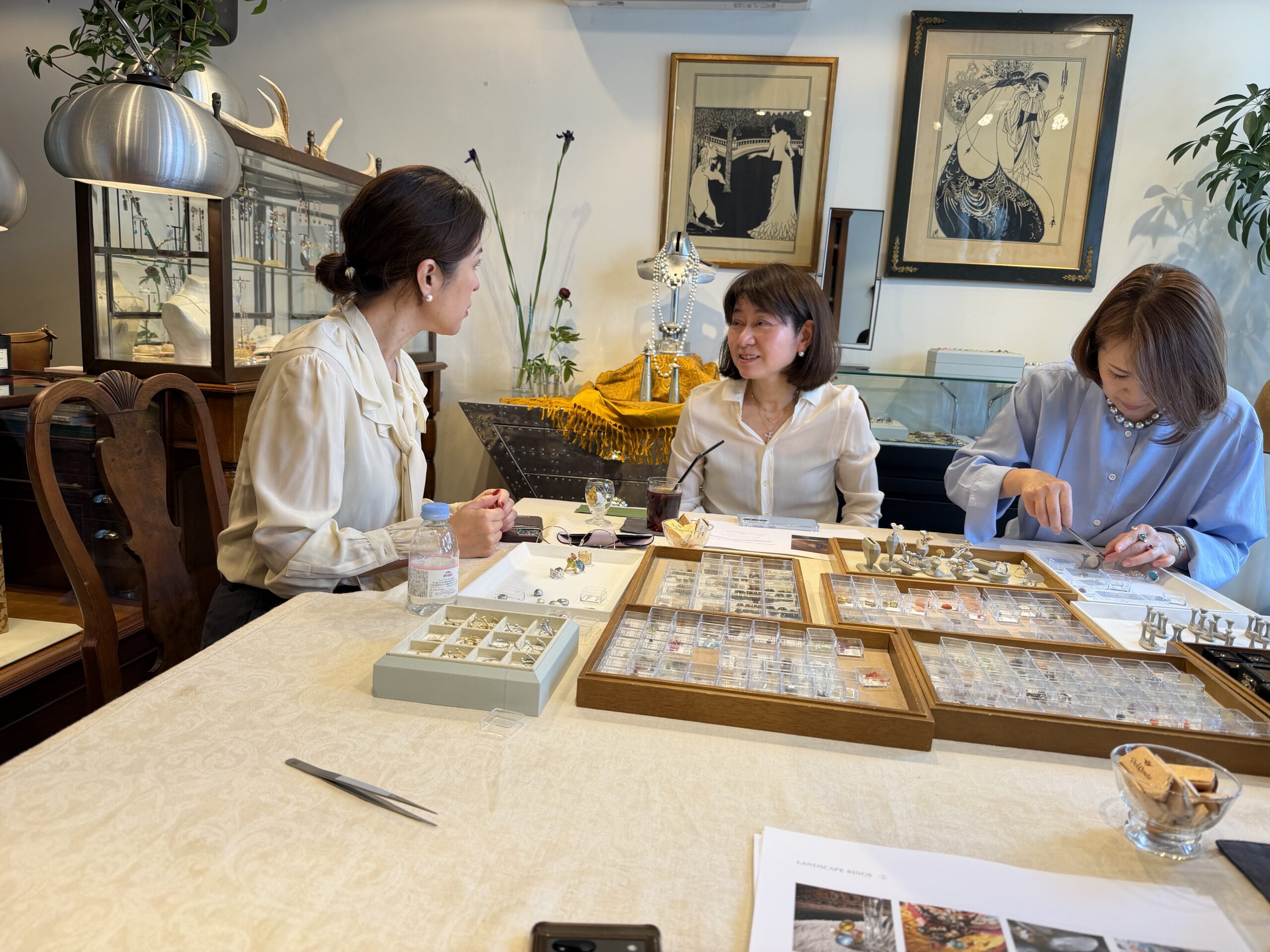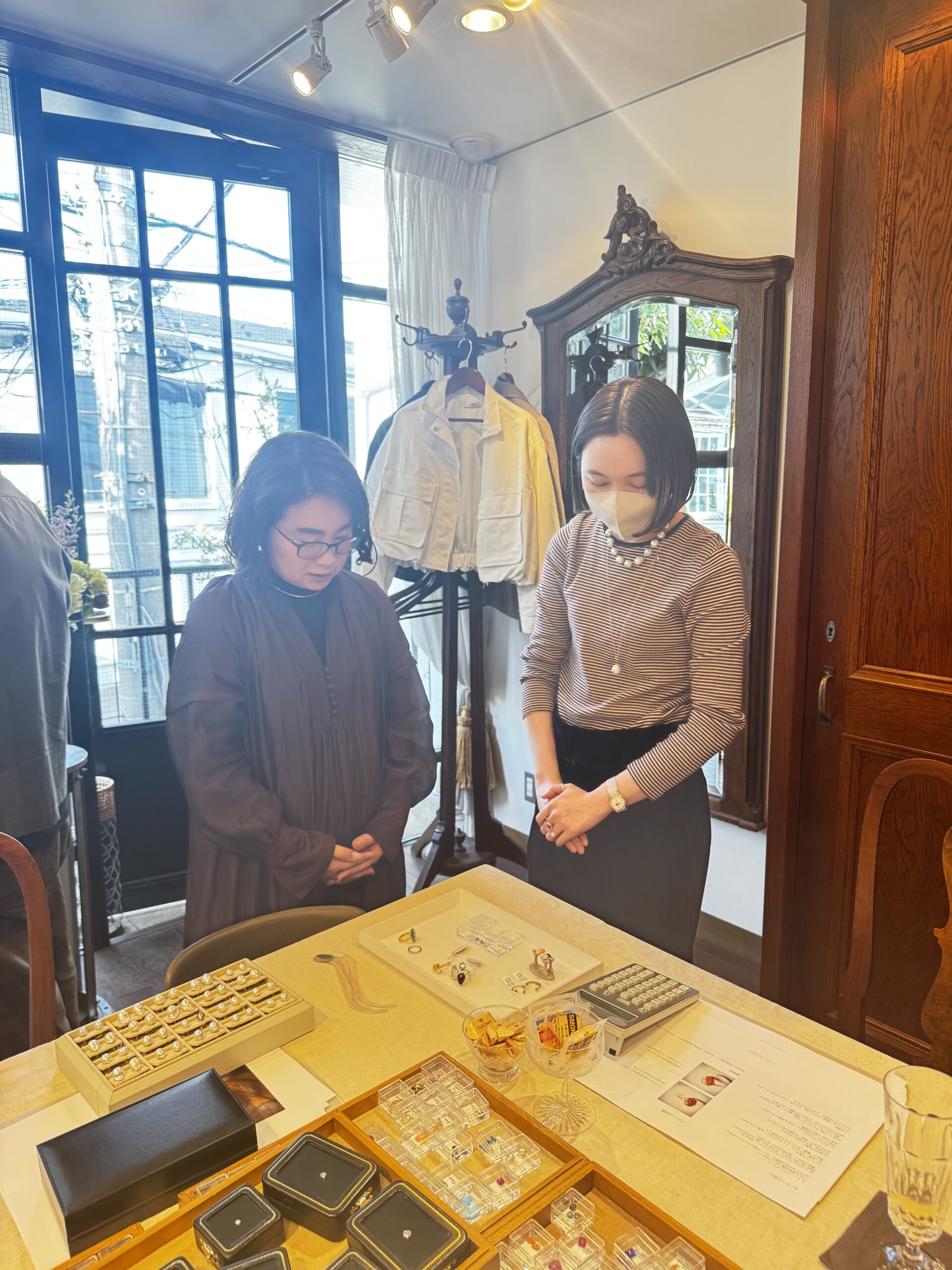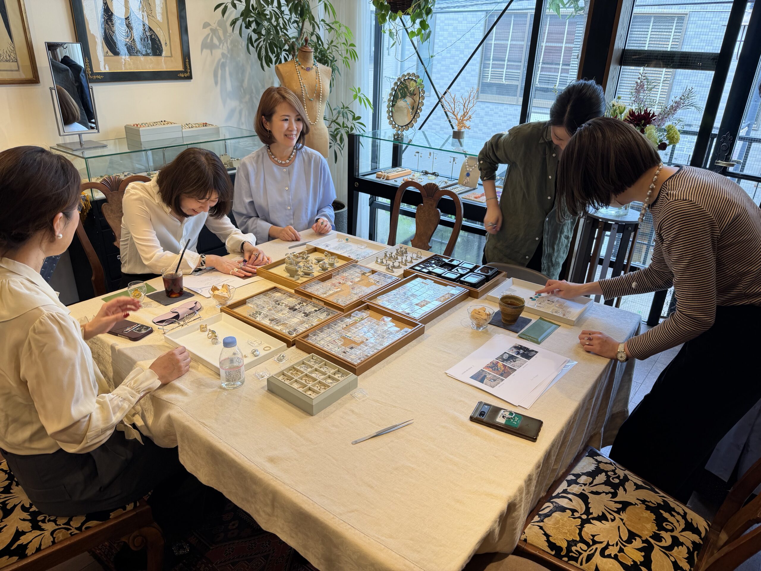 そして、お茶やシャンパーニュを出してくださったので、まるで「お茶会」のようで、とても楽しかったです。結果、5人みなさま、ピタリと来るデザインが決まりました。この後は、一度、デザイン画を確認、さらに、樹脂のリングの上にセットしたサンプルをチェックし、数か月後に「世界で1つのリング」として、お手元に届くいうプロセスが待っています。まさに、ブランドとお客様の間の、親しく愛に満ちた「旅」。白井さんがおっしゃる「今、少し手間のかかるこういったことが、価値があると思っています」まさにそうですよね。私たちも、もちろん限りはあるけれど、こうしたカスタマージャーニーを重ねていけたら良いな、と思っています。イベント中の「ファッションのスタイリングもしてもらいたい」などの声も、大切に反映していきたいな。いらしてくださった皆様、そして、ボンマジックの白井さんをはじめ、皆々様、本当にありがとうございました。