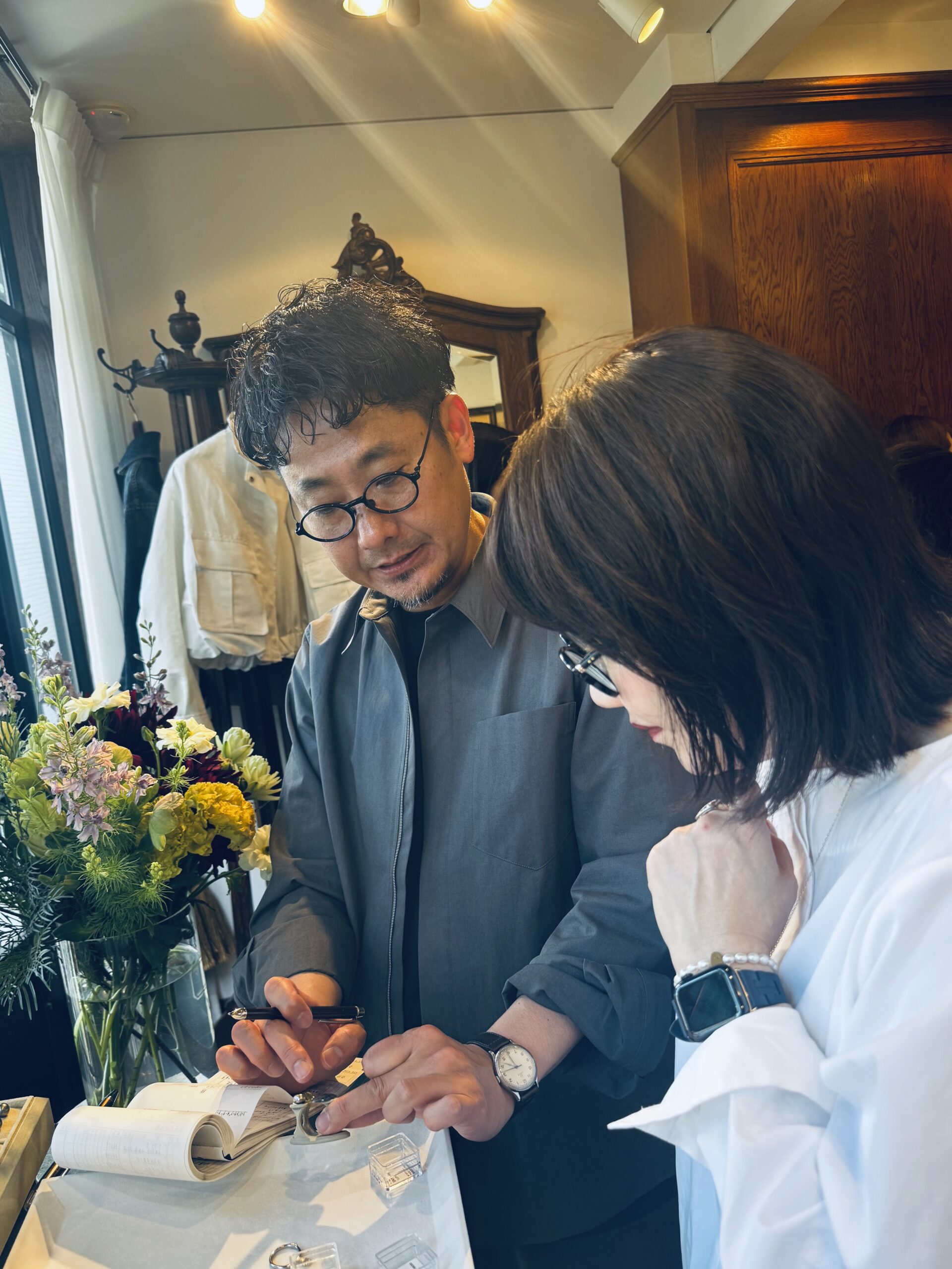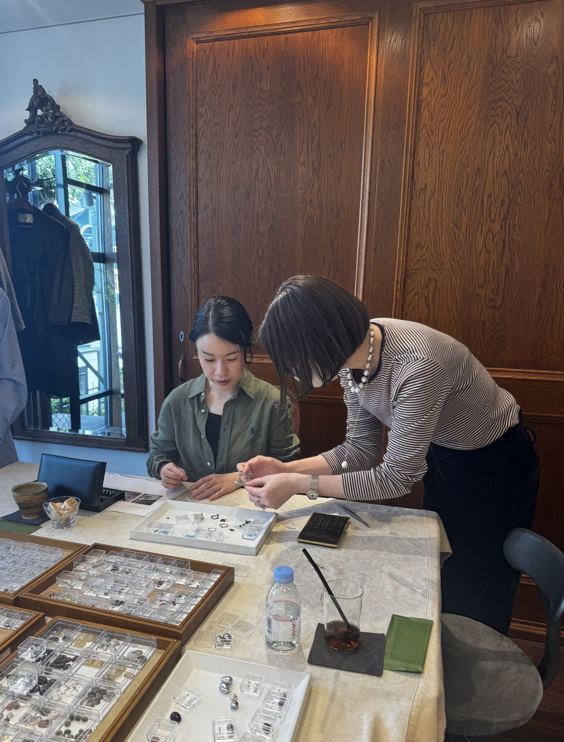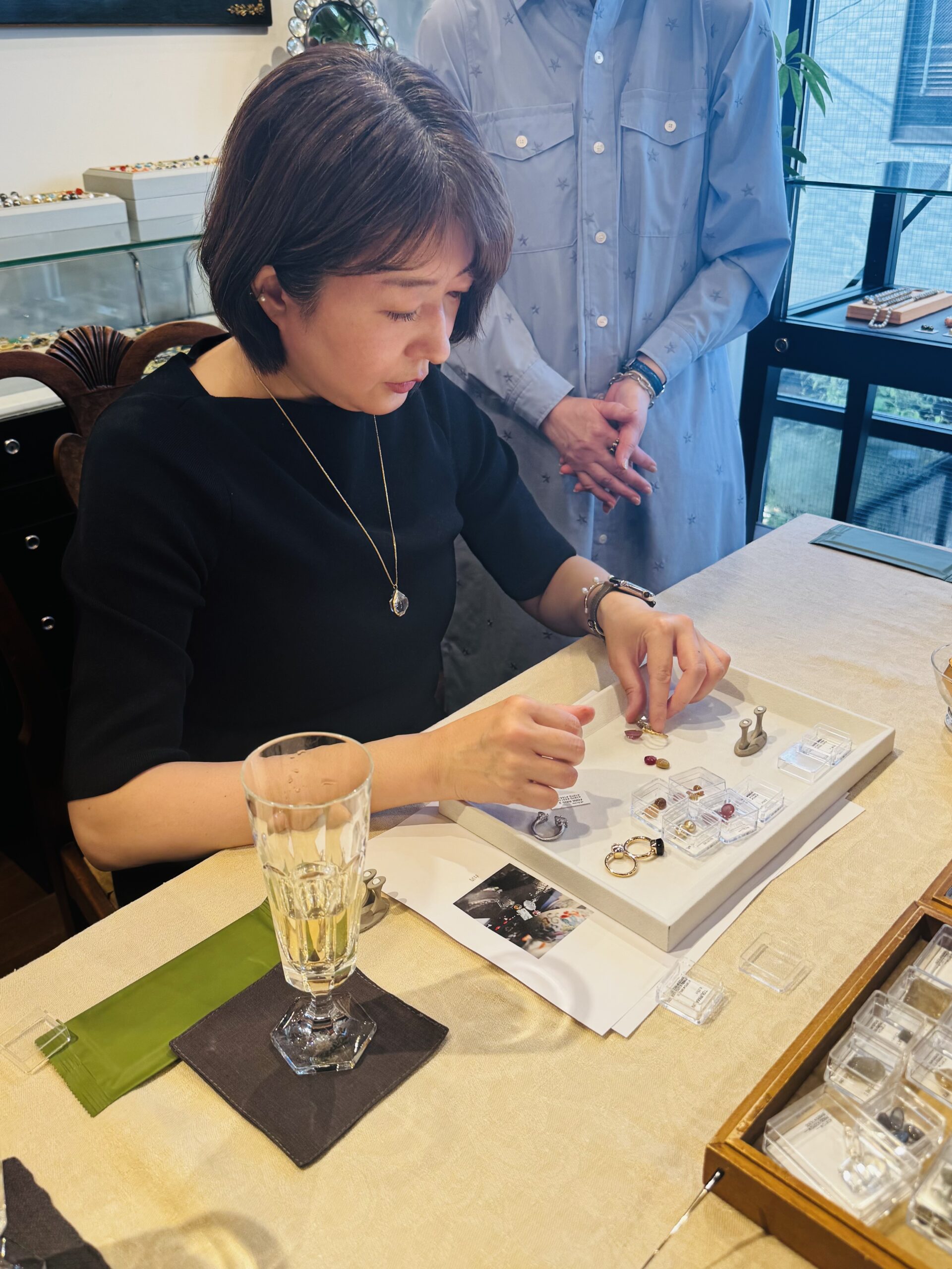 そして、お茶やシャンパーニュを出してくださったので、まるで「お茶会」のようで、とても楽しかったです。結果、5人みなさま、ピタリと来るデザインが決まりました。この後は、一度、デザイン画を確認、さらに、樹脂のリングの上にセットしたサンプルをチェックし、数か月後に「世界で1つのリング」として、お手元に届くいうプロセスが待っています。まさに、ブランドとお客様の間の、親しく愛に満ちた「旅」。白井さんがおっしゃる「今、少し手間のかかるこういったことが、価値があると思っています」まさにそうですよね。私たちも、もちろん限りはあるけれど、こうしたカスタマージャーニーを重ねていけたら良いな、と思っています。イベント中の「ファッションのスタイリングもしてもらいたい」などの声も、大切に反映していきたいな。いらしてくださった皆様、そして、ボンマジックの白井さんをはじめ、皆々様、本当にありがとうございました。