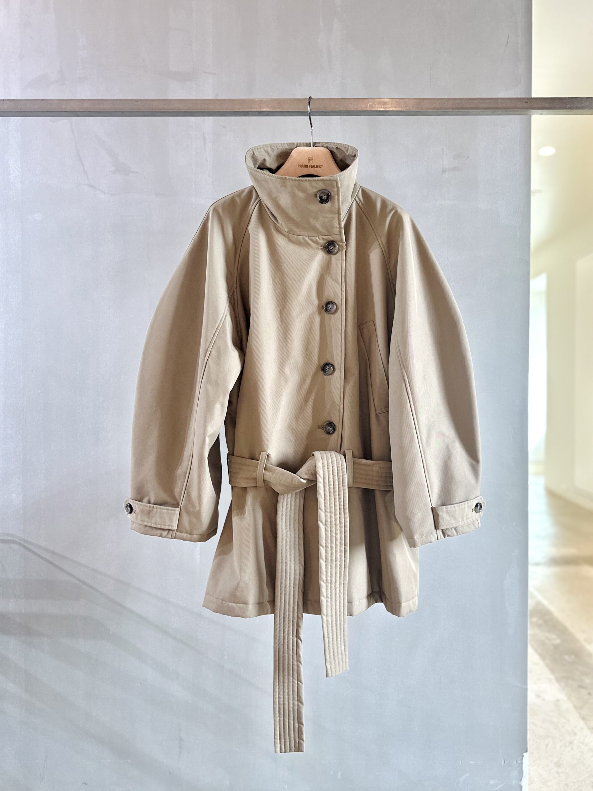 そうそう、153cmの私が着用すると、お尻がしっかりと隠れるくらいの着丈があるので、パンツだったらセミワイドか細身のもの、スカートだったら、再び流行しているタイト系のものがバランスが良さそうです。ベルトはあえて低い位置にあるので、個人的には結ばずに垂らしておくか、外してしまうか――と、そんなことまで考えるほど、このブルゾンにメロメロです♡」