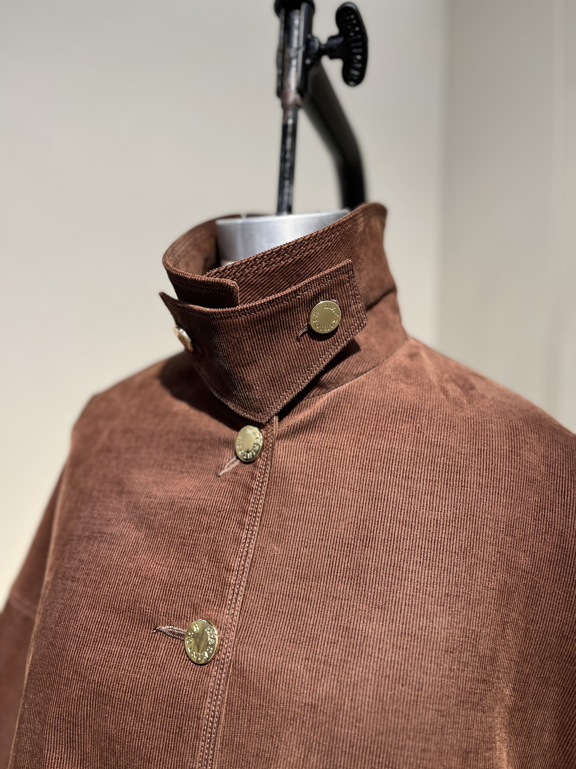 「『MACKINTOSH(マッキントッシュ)』の不動の人気モデル“HUMBIE”。以前マッキントッシュのポップアップを開催した際にも、HUMBIEだけを3着持っていらっしゃるお客様もいたほど。ONの日もOFFの日も、ボーダーレスに着たい大人の女性に寄り添ってくれる優秀な形です。さまざまな素材で展開されているのですが、元々インラインでも取り扱いのあるこのコーデュロイ素材のHUMBIEを、昨今の気候に合わせて『JOURNAL STANDARD L’ESSAGE(ジャーナル スタンダード レサージュ)』が別注しました。