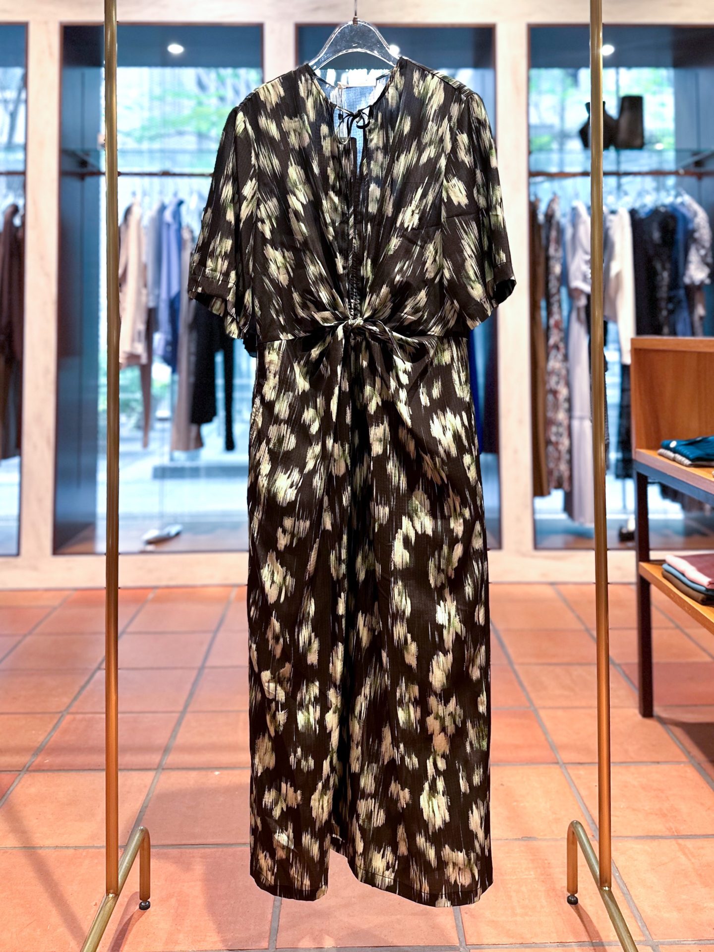そのほかに、同じブランドでプリントワンピースも見つけました♡ ベースはモノトーンでシックなんですが、グリーンが少しだけ入った、華やかさもある1枚。上品かつ遊ぶ心もあるワンピースをお探しの方にぴったりです♡』(編集部)