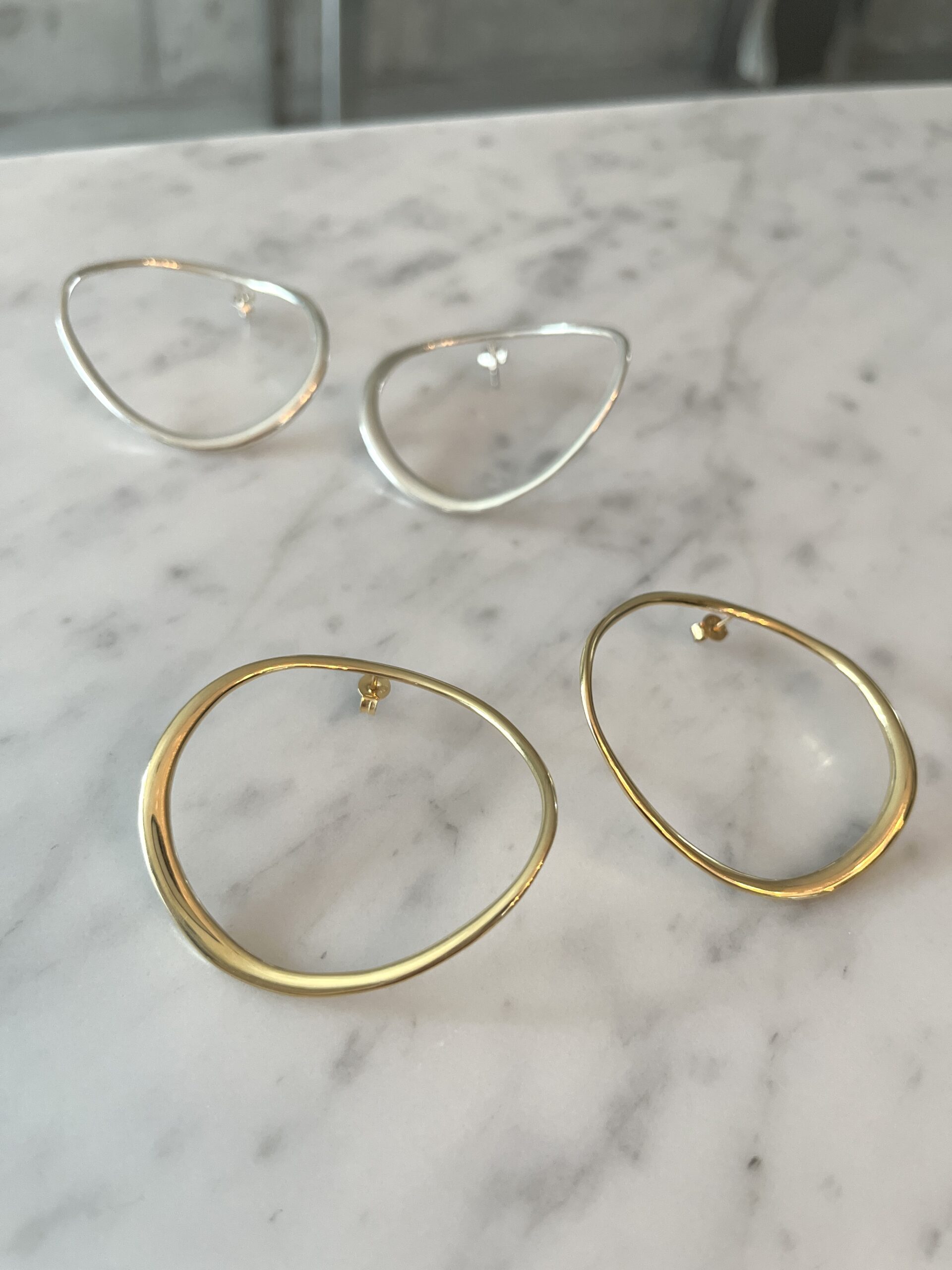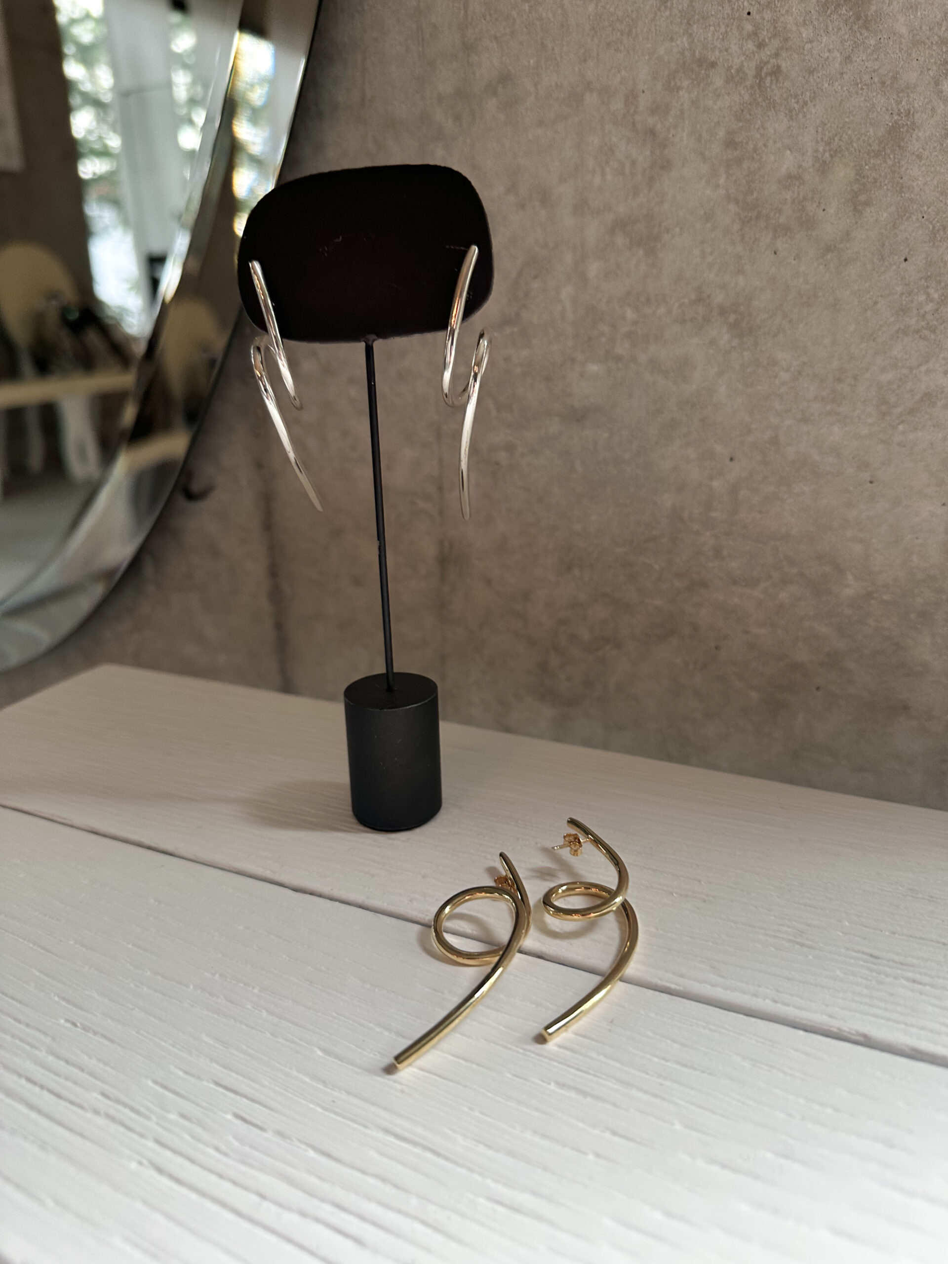 「ブランドのアイコン的存在でもある、ボリューミィなピアスたちは、どれも本当に可愛い! シンプルだけど捻りの効いたデザインで、線自体は華奢なのに躍動感があって、とっても華やか♡ この繊細な素材で描く有機的なラインは、キラリと反射する光さえ、どこかまろやかで優しい印象に。大ぶりでも重さを感じさせないので、見た目にもつけ心地も軽やか。コーディネートにひとクセほしい時、こんなピアスがとっても役立ちます。耳につけた途端、身体に馴染む、計算されたフォルムが素晴らしい……これはぜひ体験してみてほしい。その華やかさに驚くはずだから!