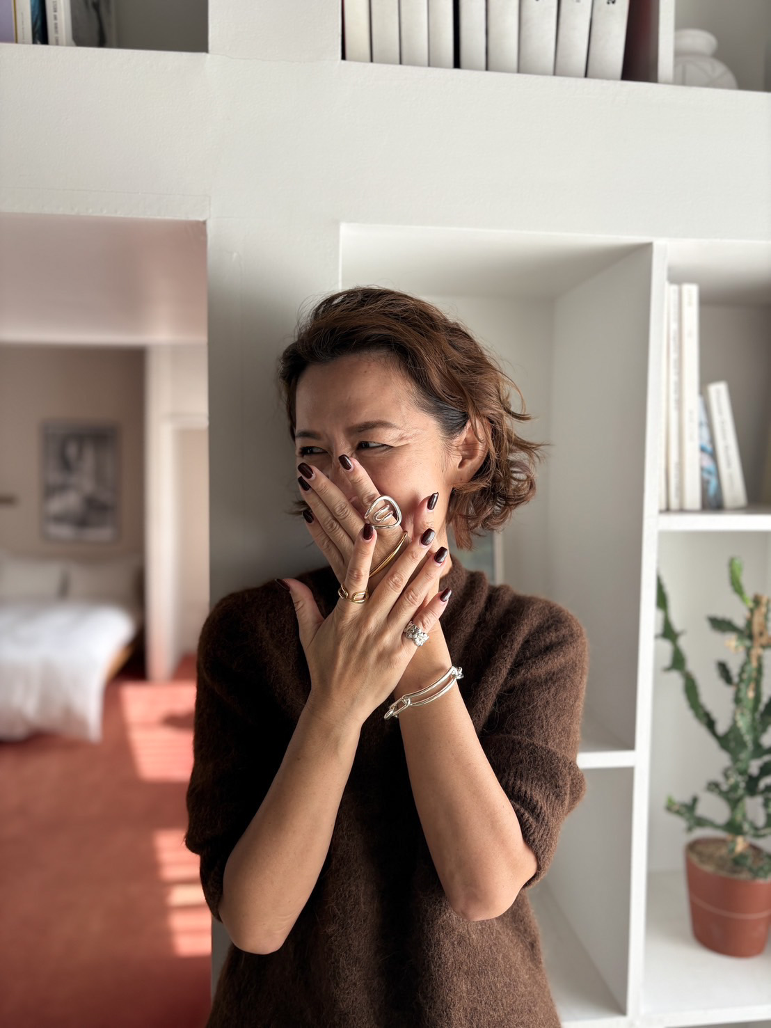 そして、左手人差し指にしたリングもとっても可愛い♡ 立体的で、独創的で、なんてアーティスティックなジュエリー! 手持ちのジュエリーとの馴染みもいいから、これは即戦力になりそう」(大草)