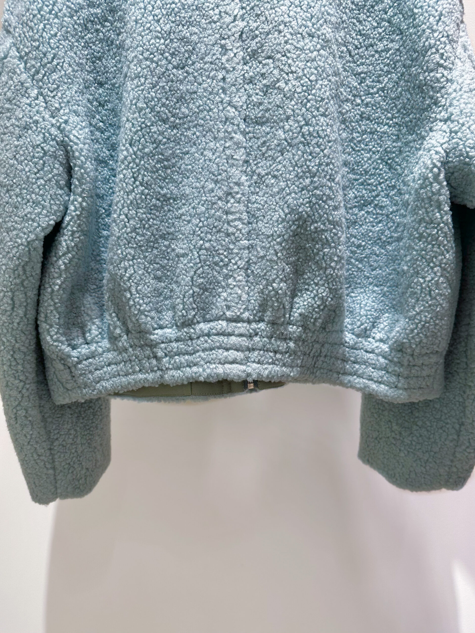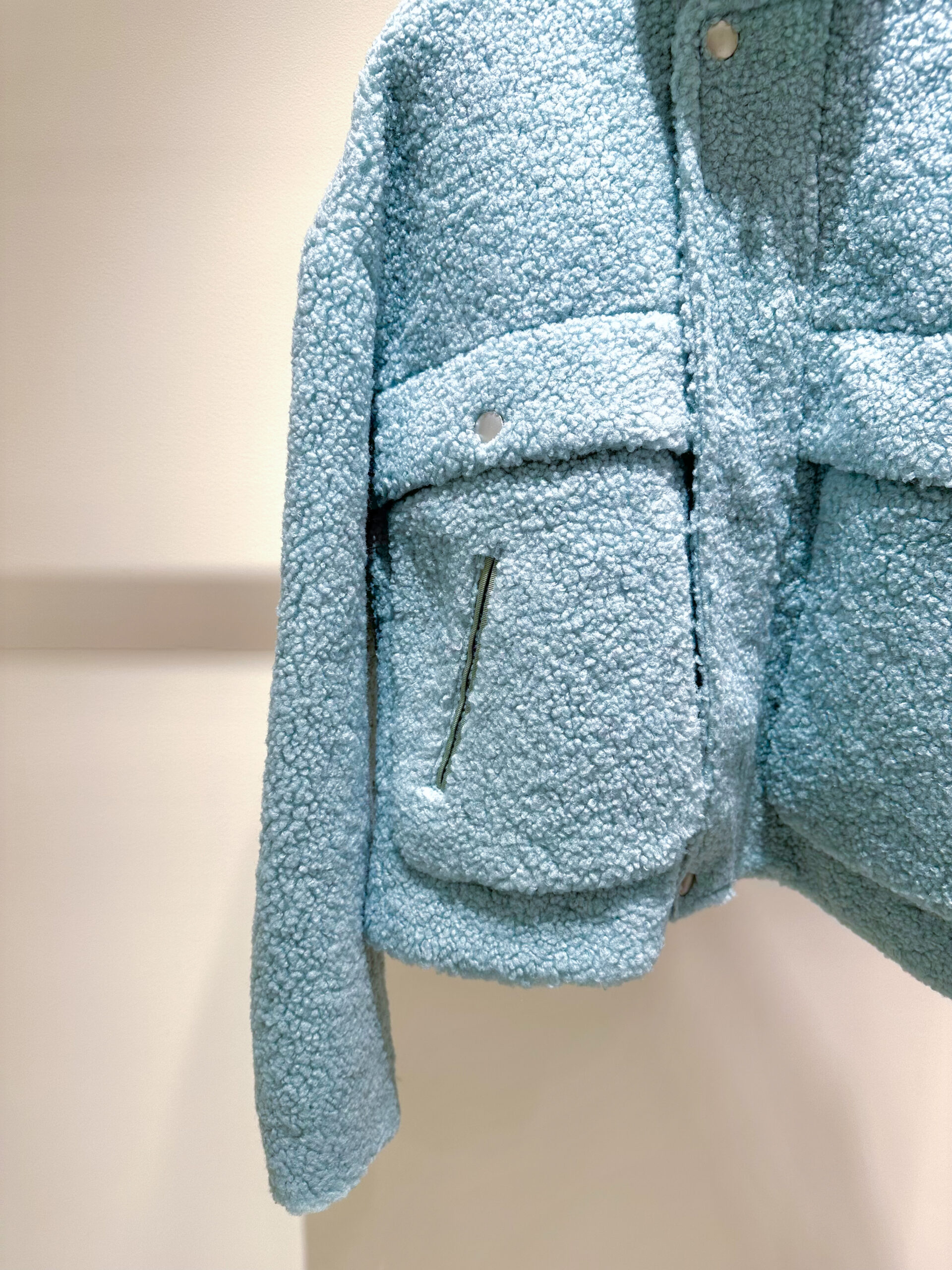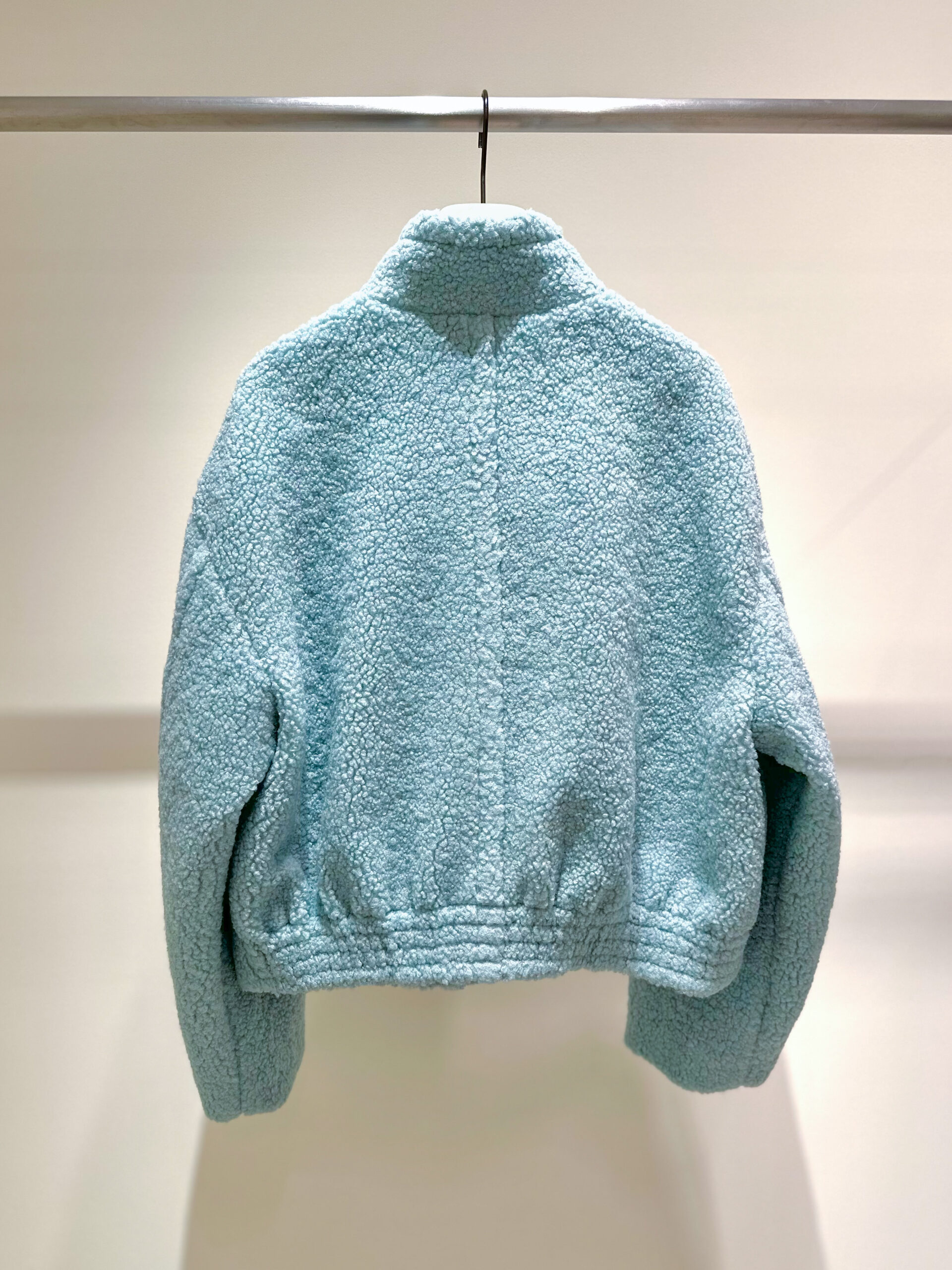 「90年代テイストのデザインをベースに、今季らしいボア素材で仕立てたブルゾン。ドロップショルダーや胸元のファスナー付きパッチポケットなど、機能的で遊び心のあるディテールが随所に散りばめられています。さらに、ドットボタンやメタルファスナーなどの金属パーツをアクセントに効かせることで、クラシックとモードが融合した独特のムードを演出してくれます。