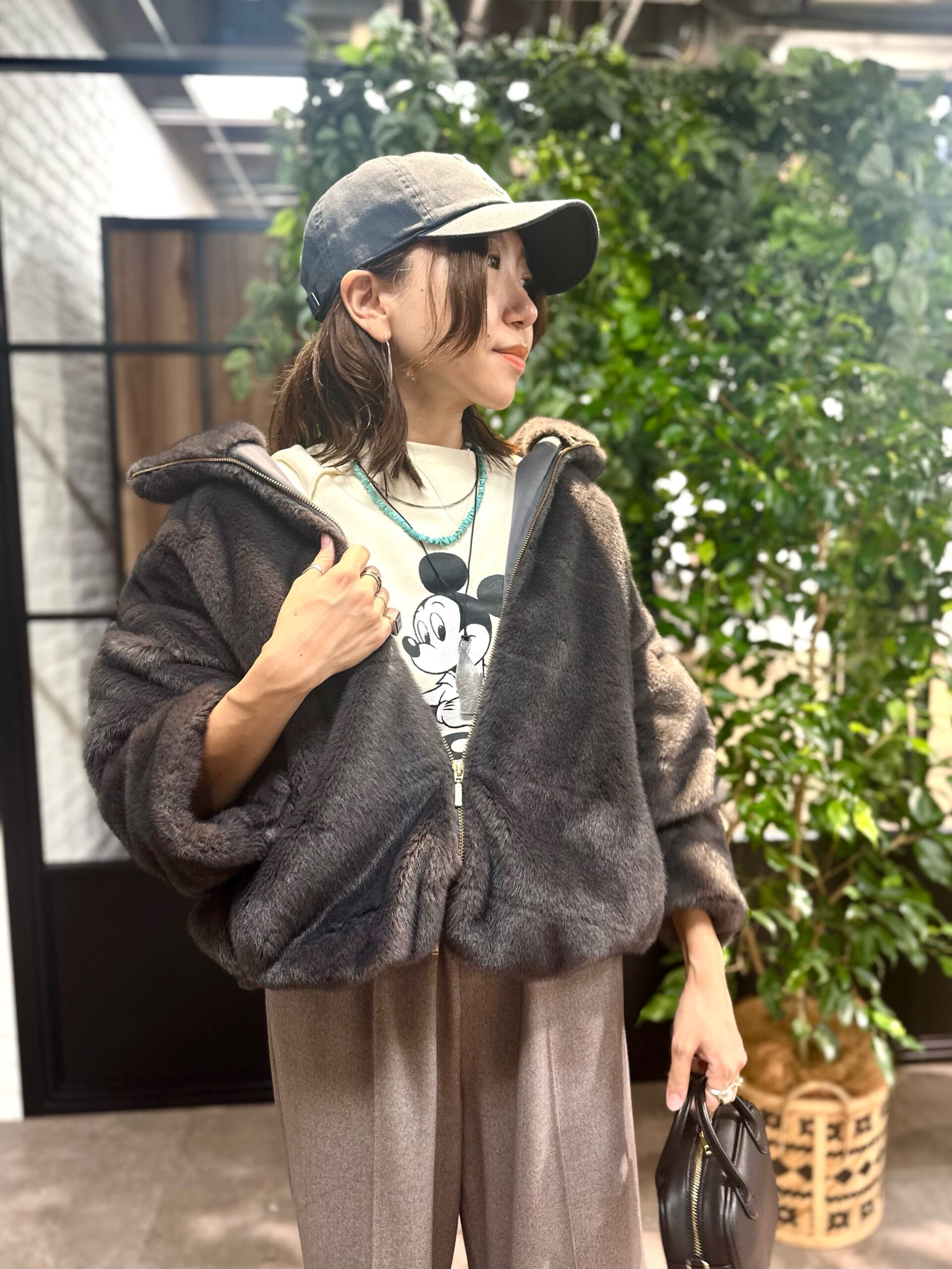 「今季の注目アイテムといえば『ファー』。控えめなものより、毛足が長めのゴージャスで華やかなものが、特に人気です。最近は、フェイクファーのクオリティがどんどん上がっていて、見た目も肌触りも本物と見分けがつかないほど!
