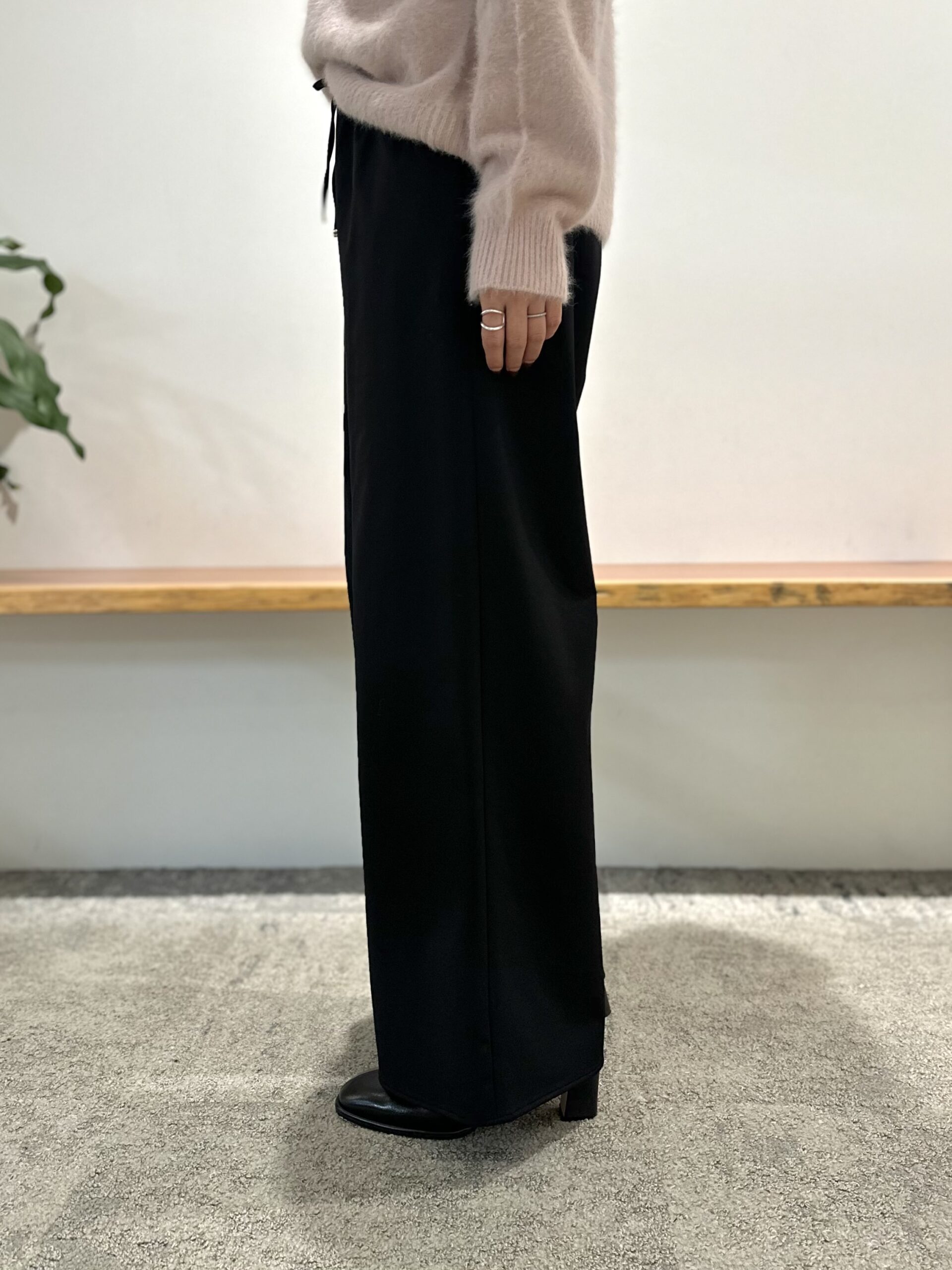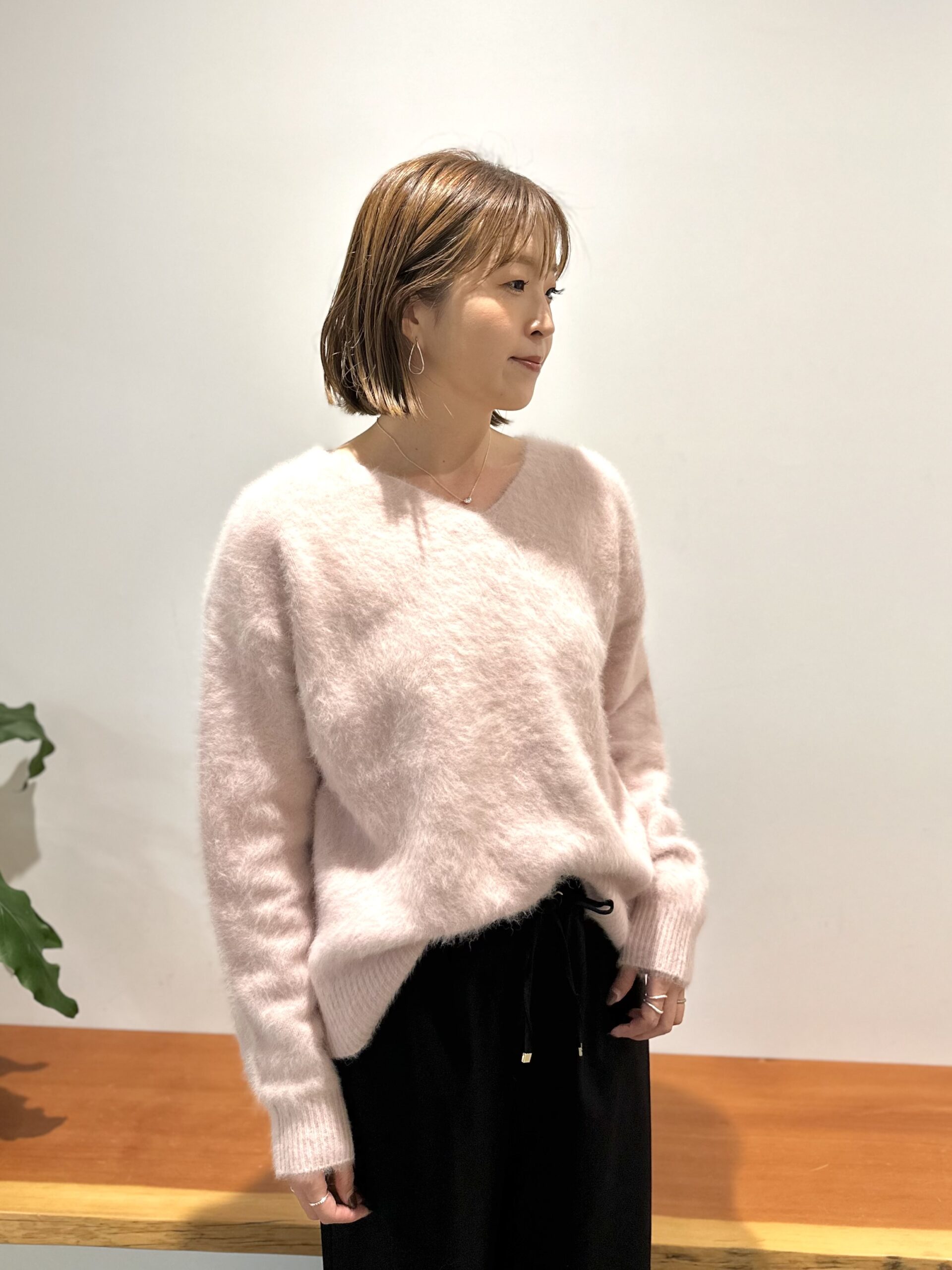 どのパンツもきちんときれい見えするのに、温かいとは! 手放せない一本になりそうです。そして、合わせたニットもまた素晴らしい♡ フォックスカシミヤのラグジュアリーなニットで、前後2way仕様。この素材でアンダー3万円はかなりお得なのでは?! 理由を聞くと、工場の閑散期にオーダーすることで、価格を抑えているんだそう。ありがたい(涙)。上質素材だからこそ、ニット&パンツのワンツーコーディネートでしっかりおしゃれ!