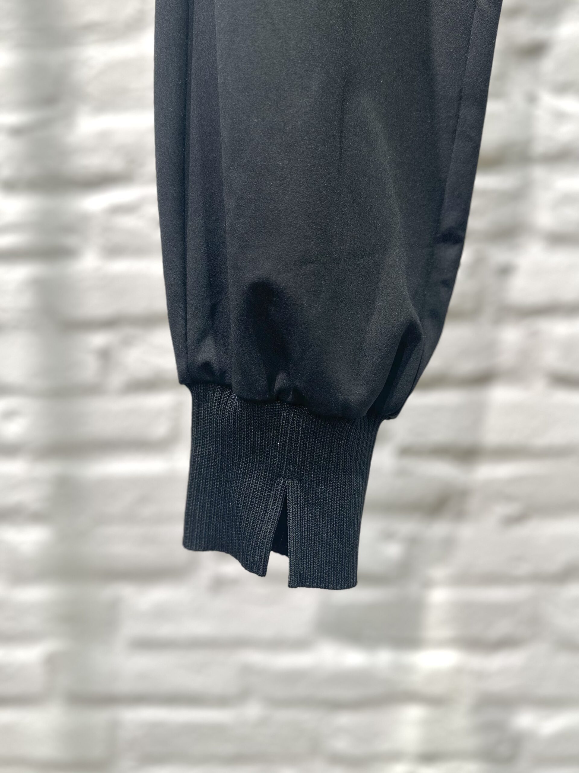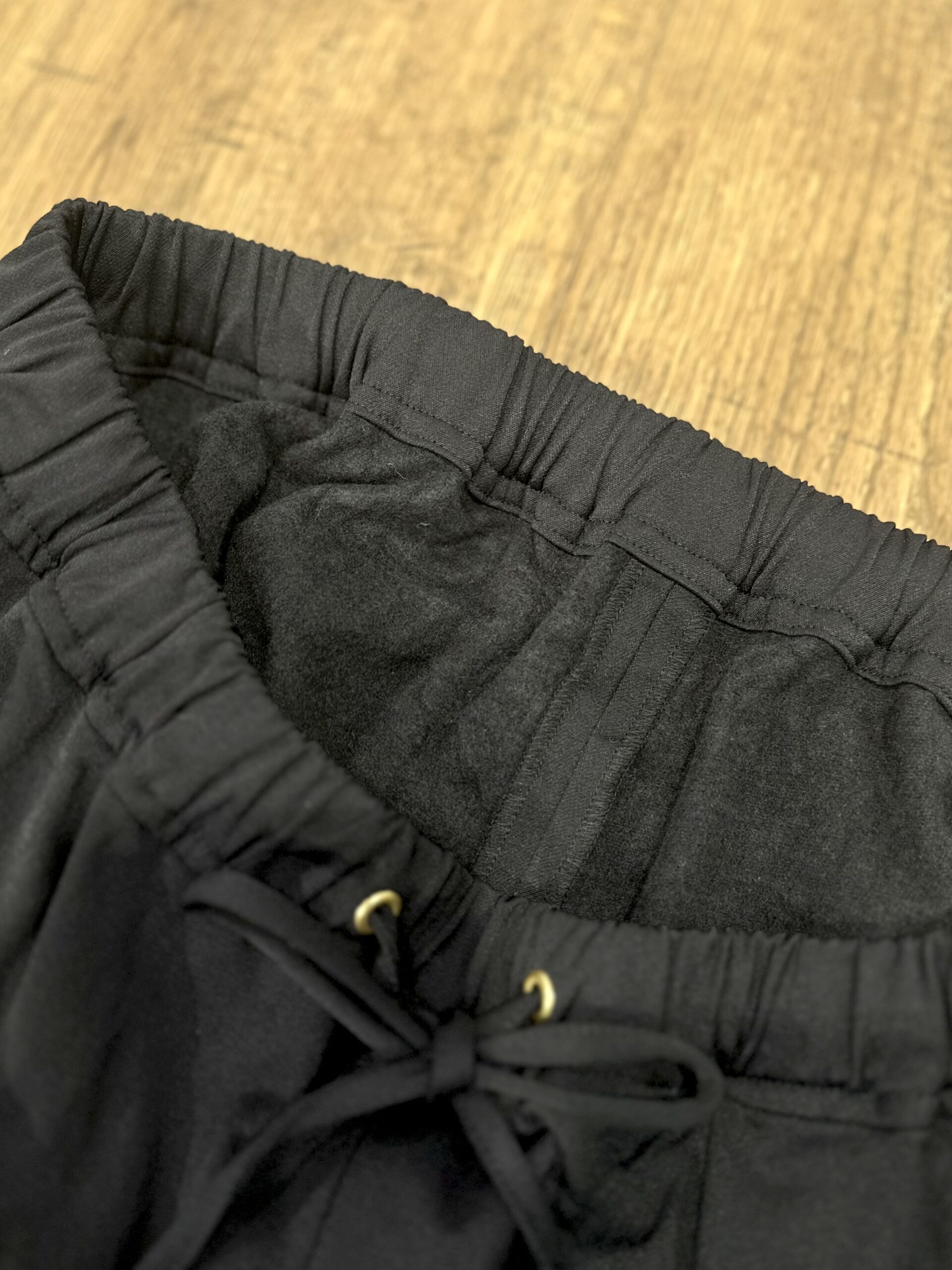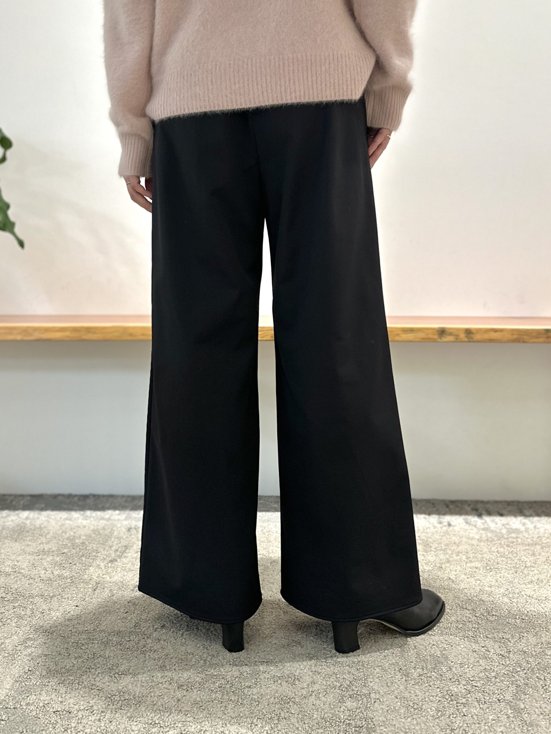 さらに温かい素材を使用したのが、『ハイテンション裏起毛ジョガーパンツ』 。リラクシィなジョガーパンツですが、ピリングを抑えるさらりとした表面感と、裾のスリットがカジュアルになりすぎるのを防ぎ、脚を長く見せてくれます。ブーツインスタイルもしやすいシルエットです。