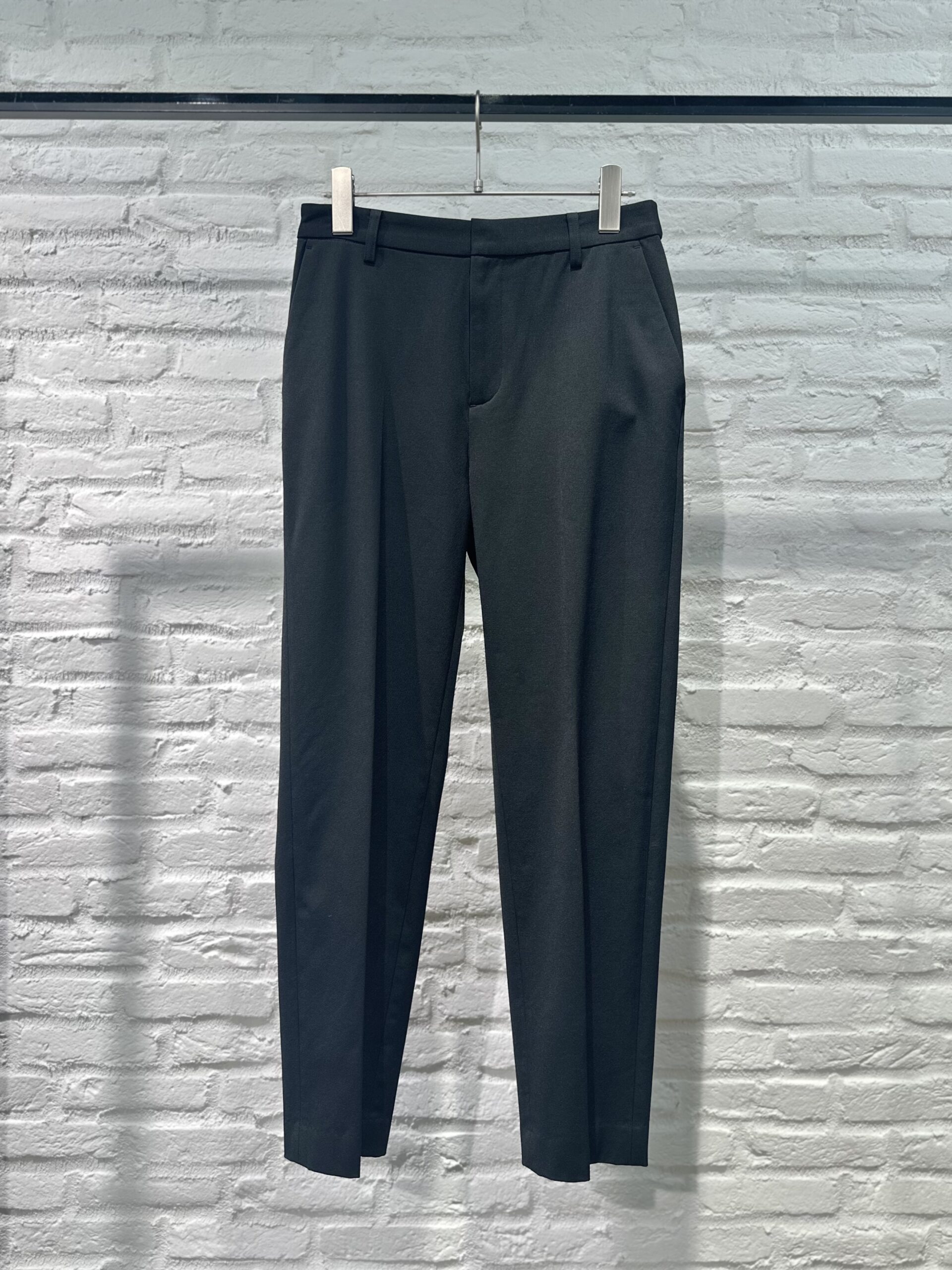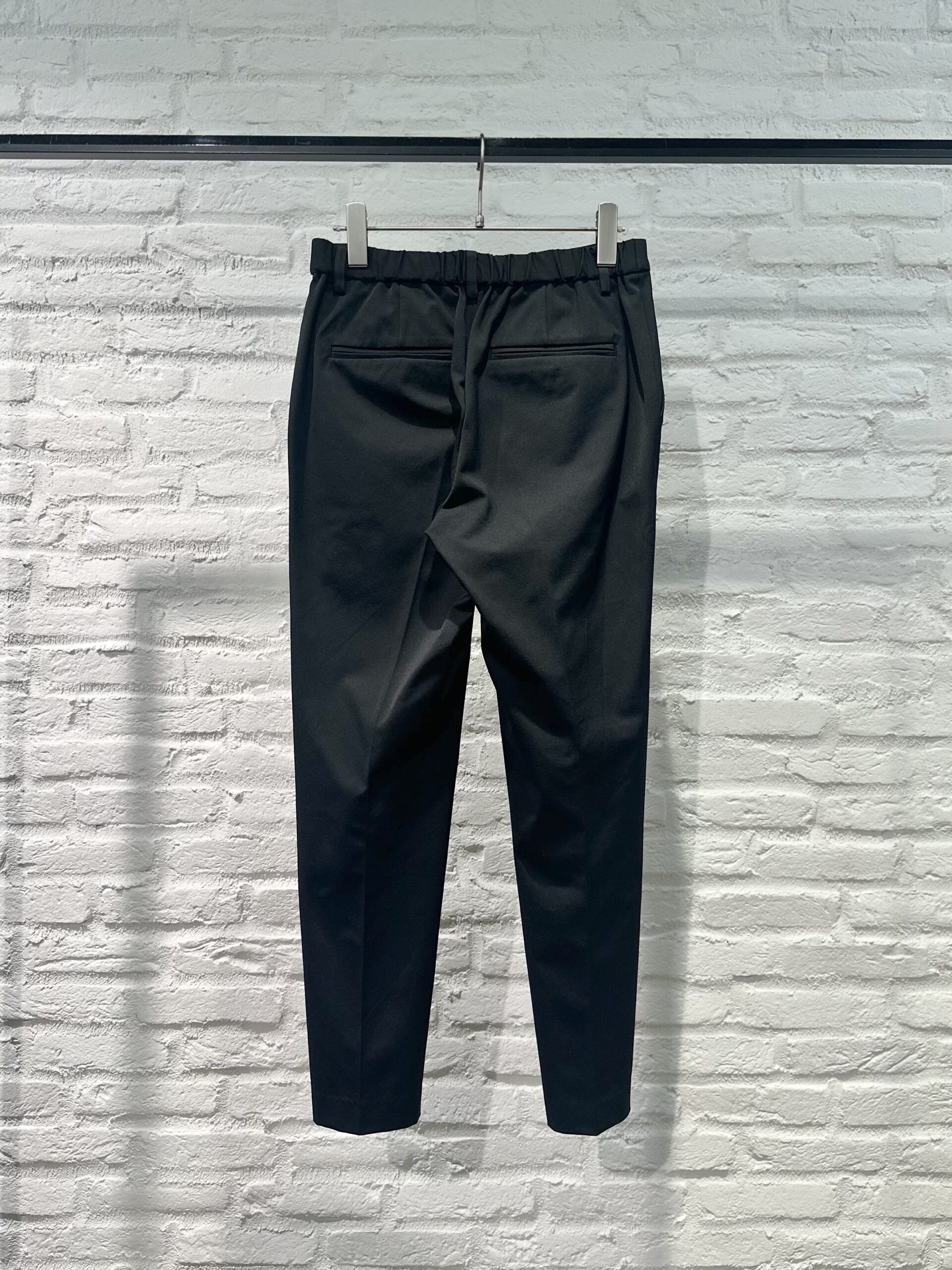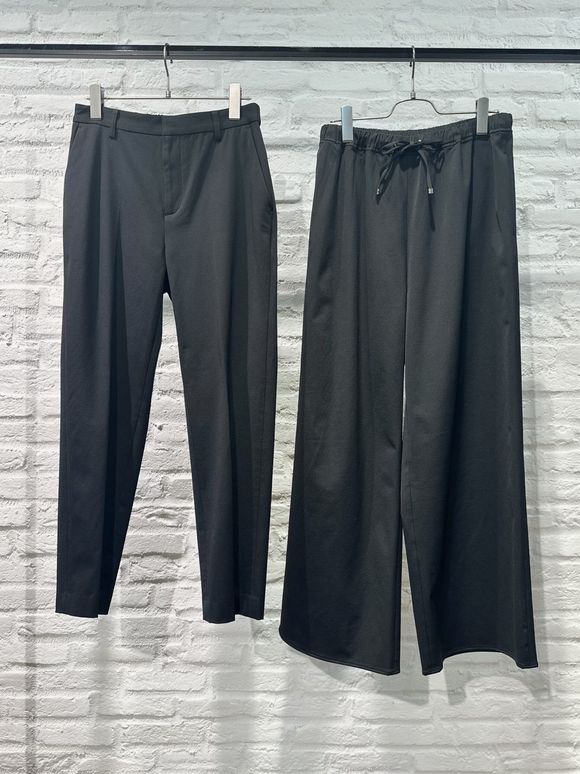 同じ素材のテーパードパンツは一層お仕事向き。綺麗な細身シルエットですが、脚のラインを拾わない優秀パンツです。