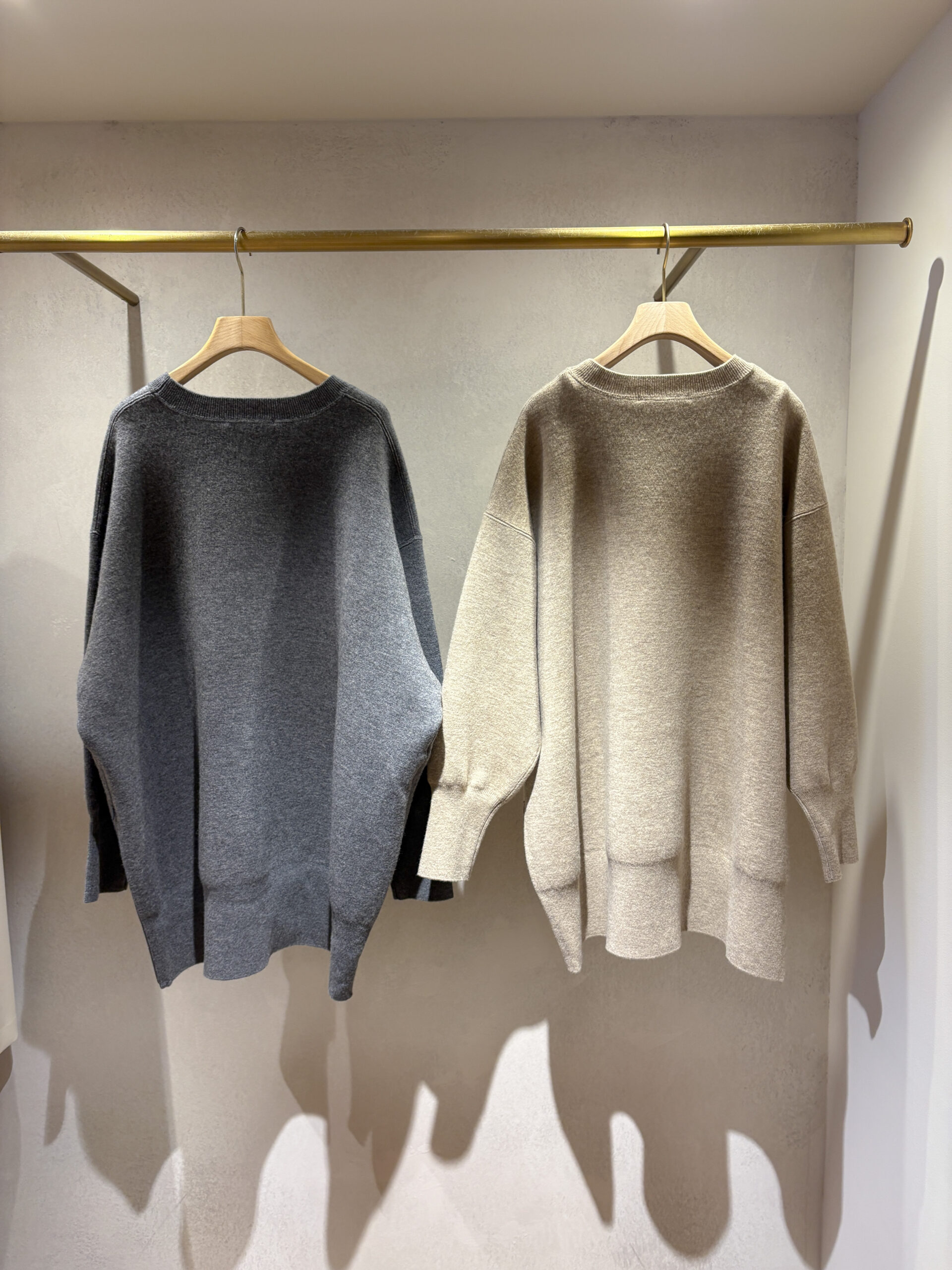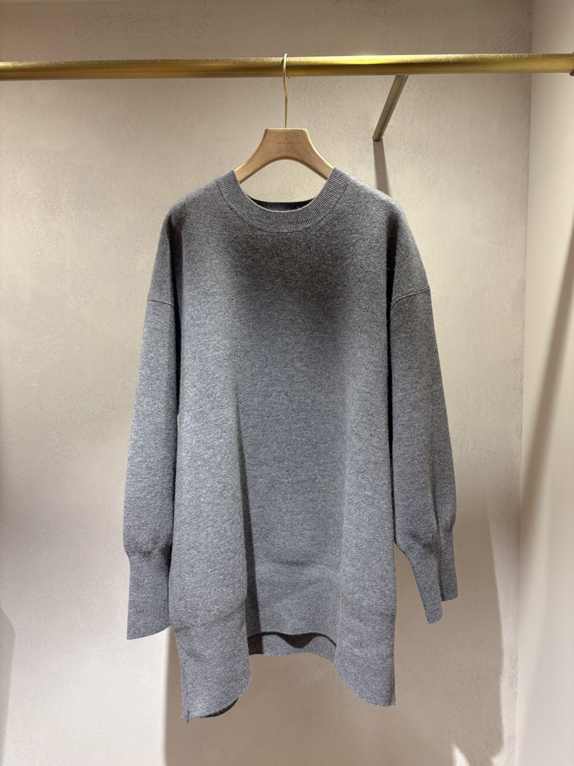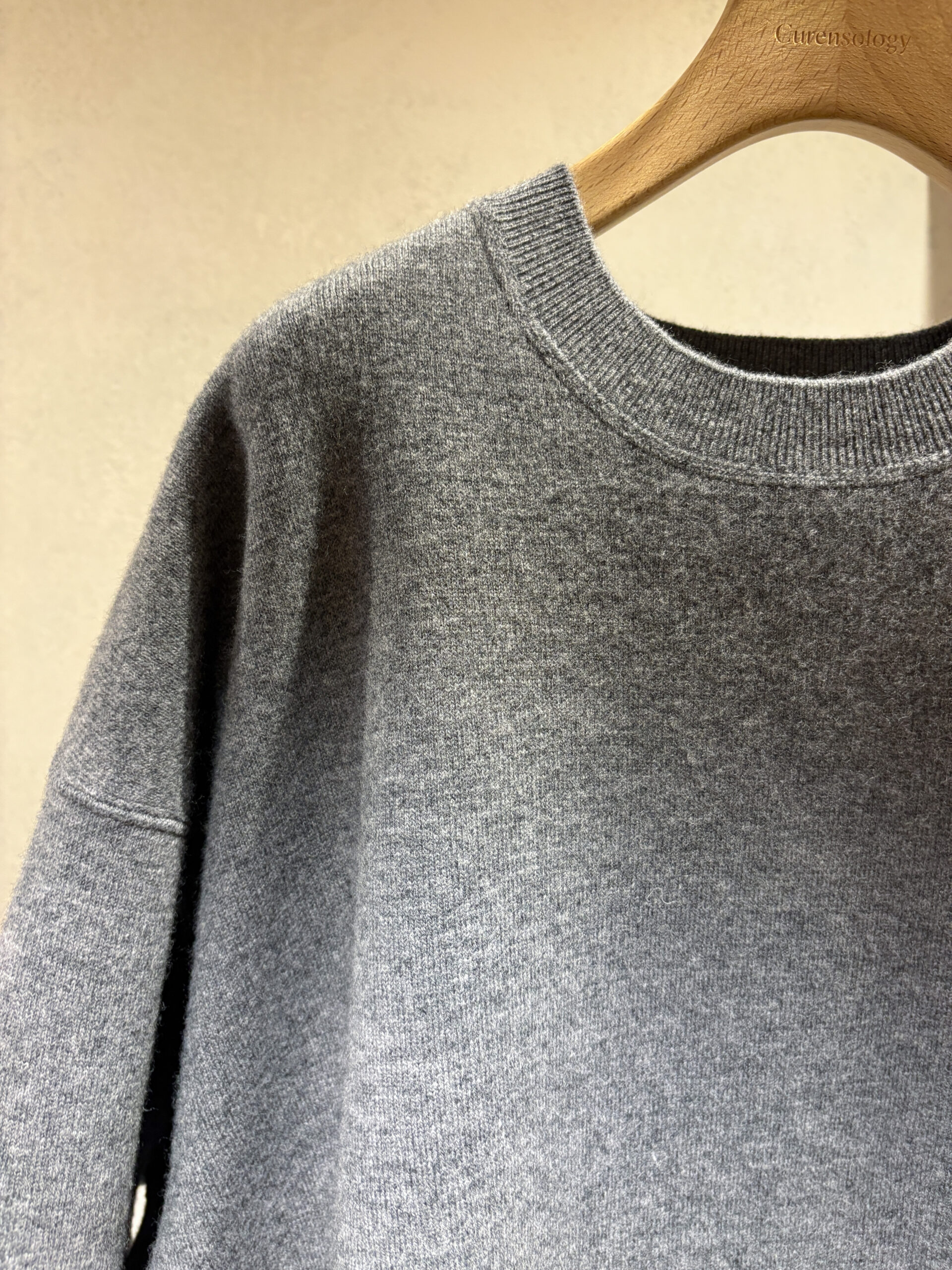 「“シンプルなニット”という枠には、絶対おさまらない──なんて美しいニット! 着るだけで“美人オーラ”をまとえるニットです(笑)。たっぷりとした身頃と丈感、ふくらみのある袖、そして対照的にコンパクトなネックライン。このバランスが本当に絶妙!