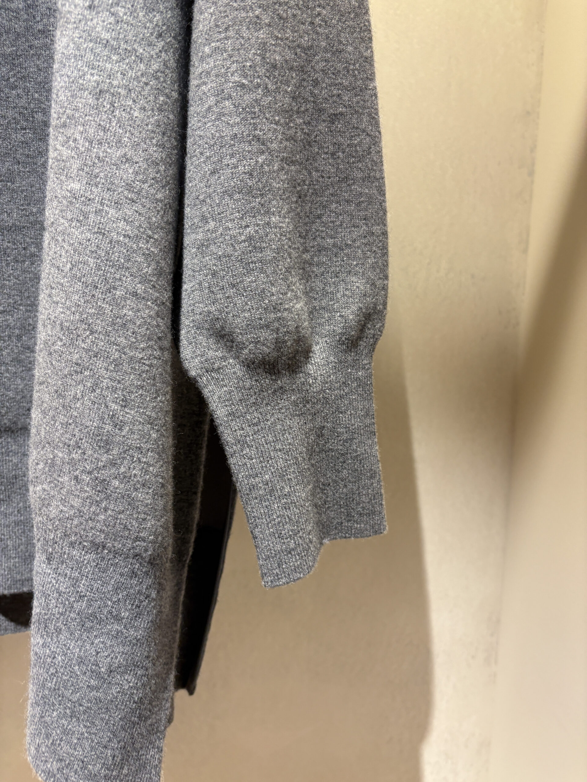 そして一番の推しポイントは、両サイドに配されたファスナー。開け閉めすることでシルエットの変化が楽しめ、スリットのような抜け感も生み出してくれます。パンツにもスカートにも難なく合わせられ、アレンジ自在。まさに“着回し力と美しさを両立した”頼れるニットです♡」(大草)