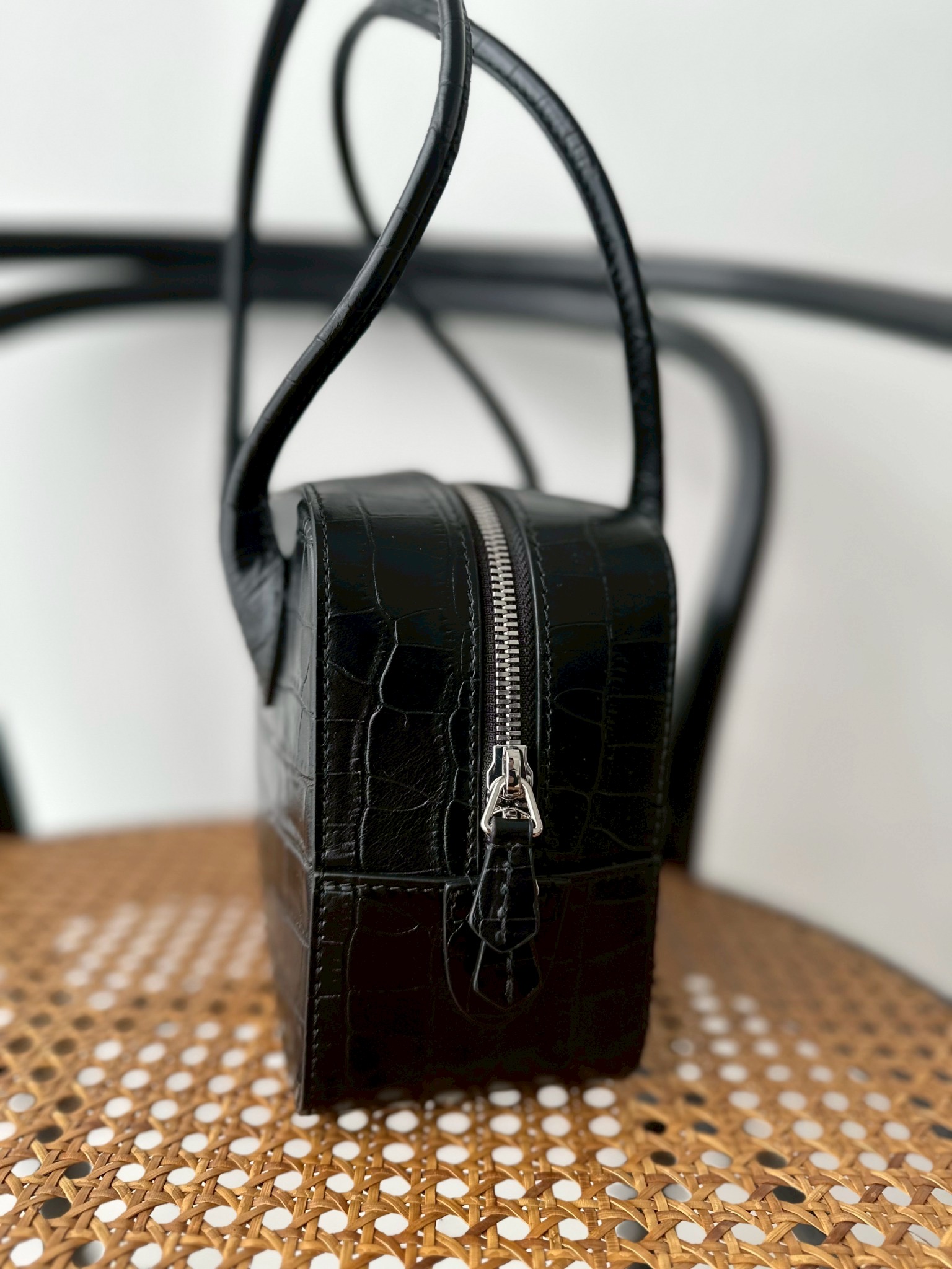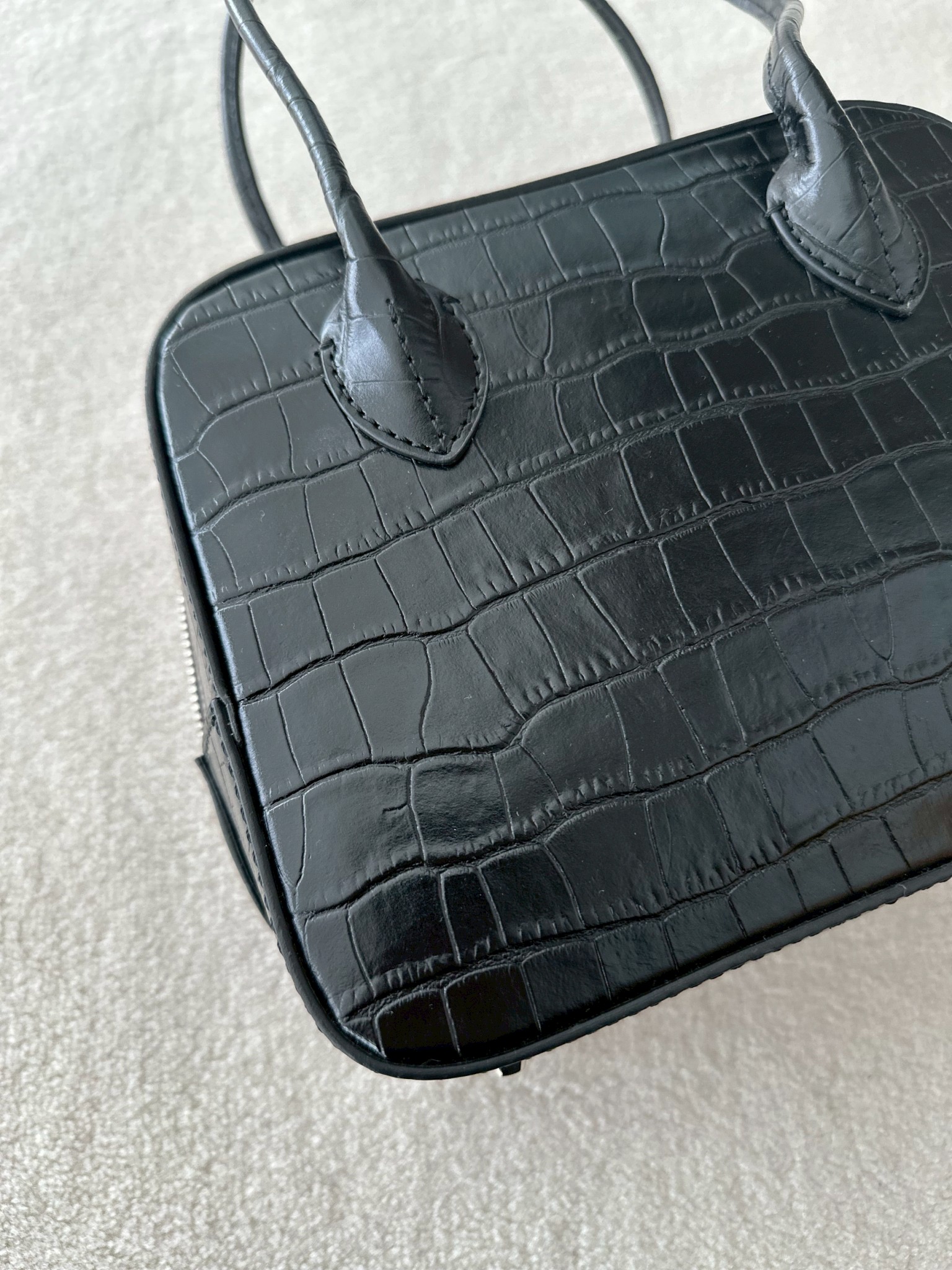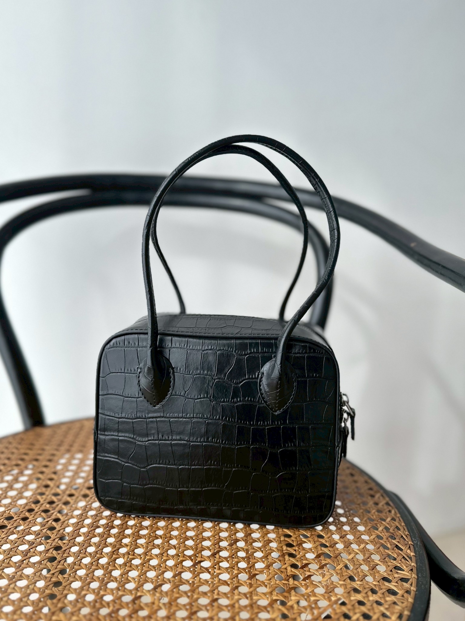 クラシカルなクロコダイルの型押しレザーと、ミニマルなシルエットは、雑味のない静かな佇まい。どんな洋服にもフィットしてくれるんだけれど、決して地味にはならず、まさにクワイエットラグジュアリーそのもの。フェミニンなワンピースの時にはそのまま、カジュアルな装いにはチャームをつけて遊びを加えるなど、表情の変化を楽しんでいます。職業柄、バッグはたくさん持っているけれど、これさえあればどんなシーンも乗り切れる、そんな頼もしいマルチな存在です。