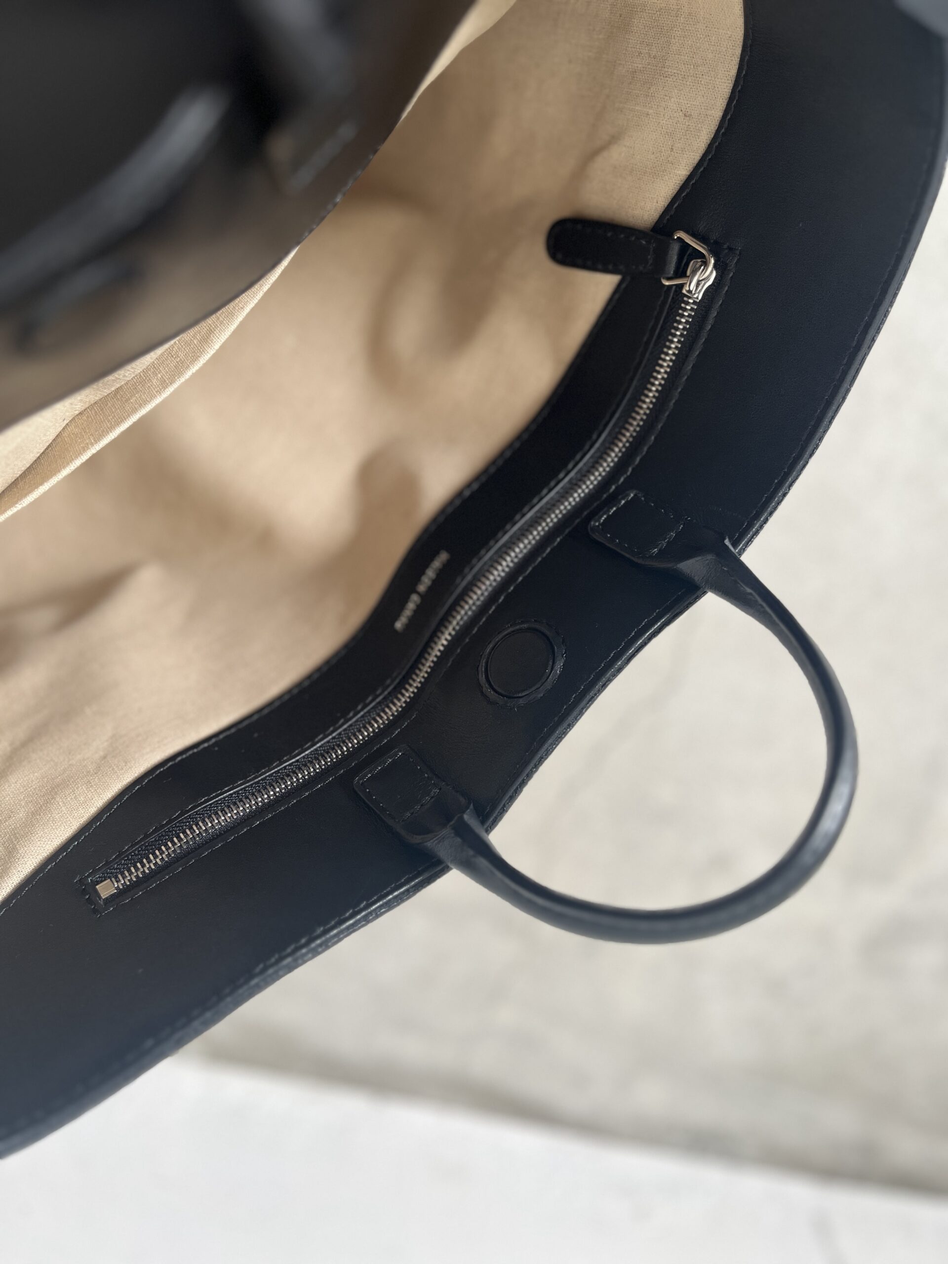 デザインは、装飾を極限まで削ぎ落としたミニマルなスタイルが魅力で、ブランドの核となるカラーは「ブラック」のみという潔い展開。デザインと職人技、環境への配慮を兼ね備えた、上質なものづくりの姿勢を体現している、バッグブランドです。
