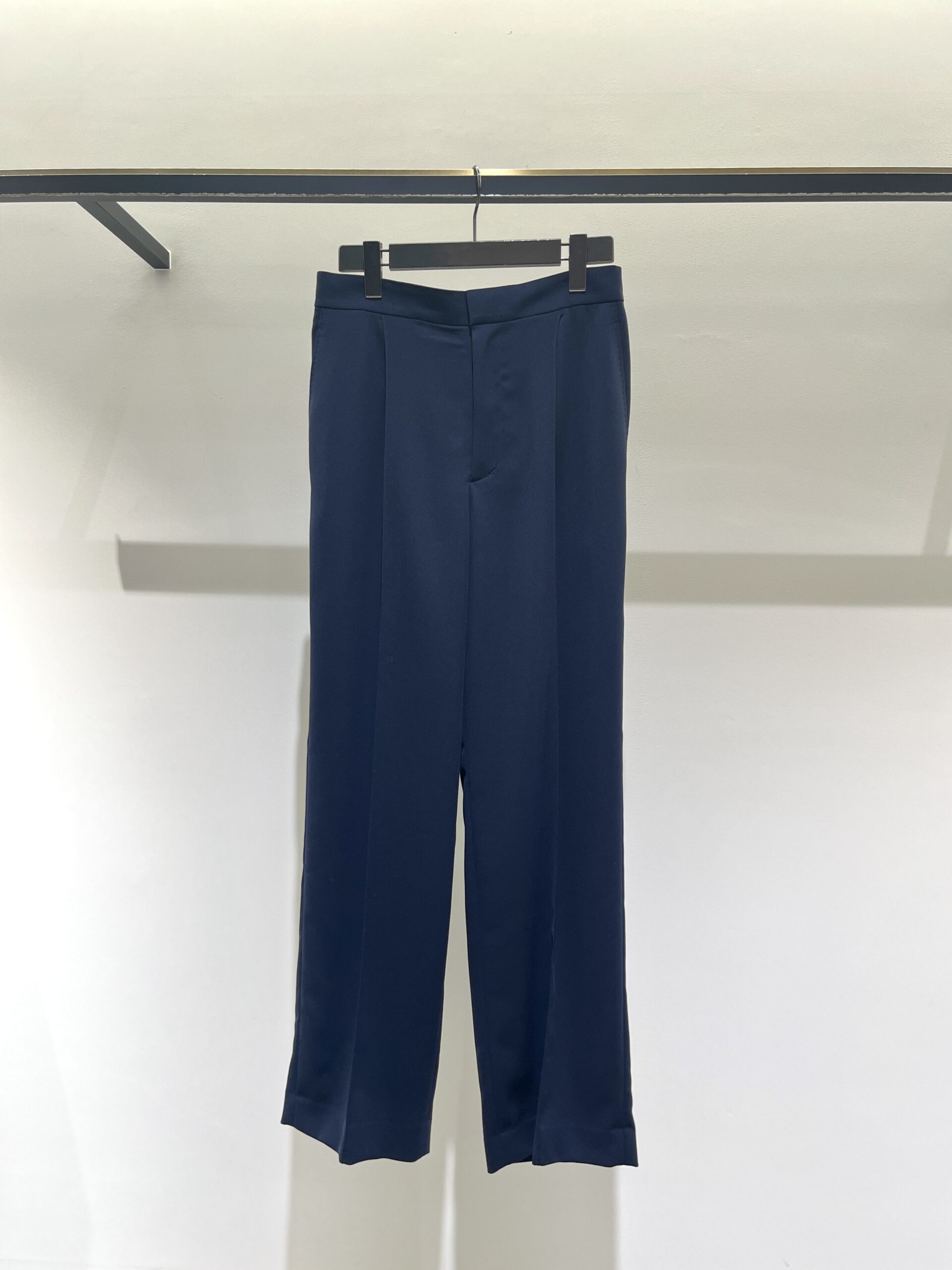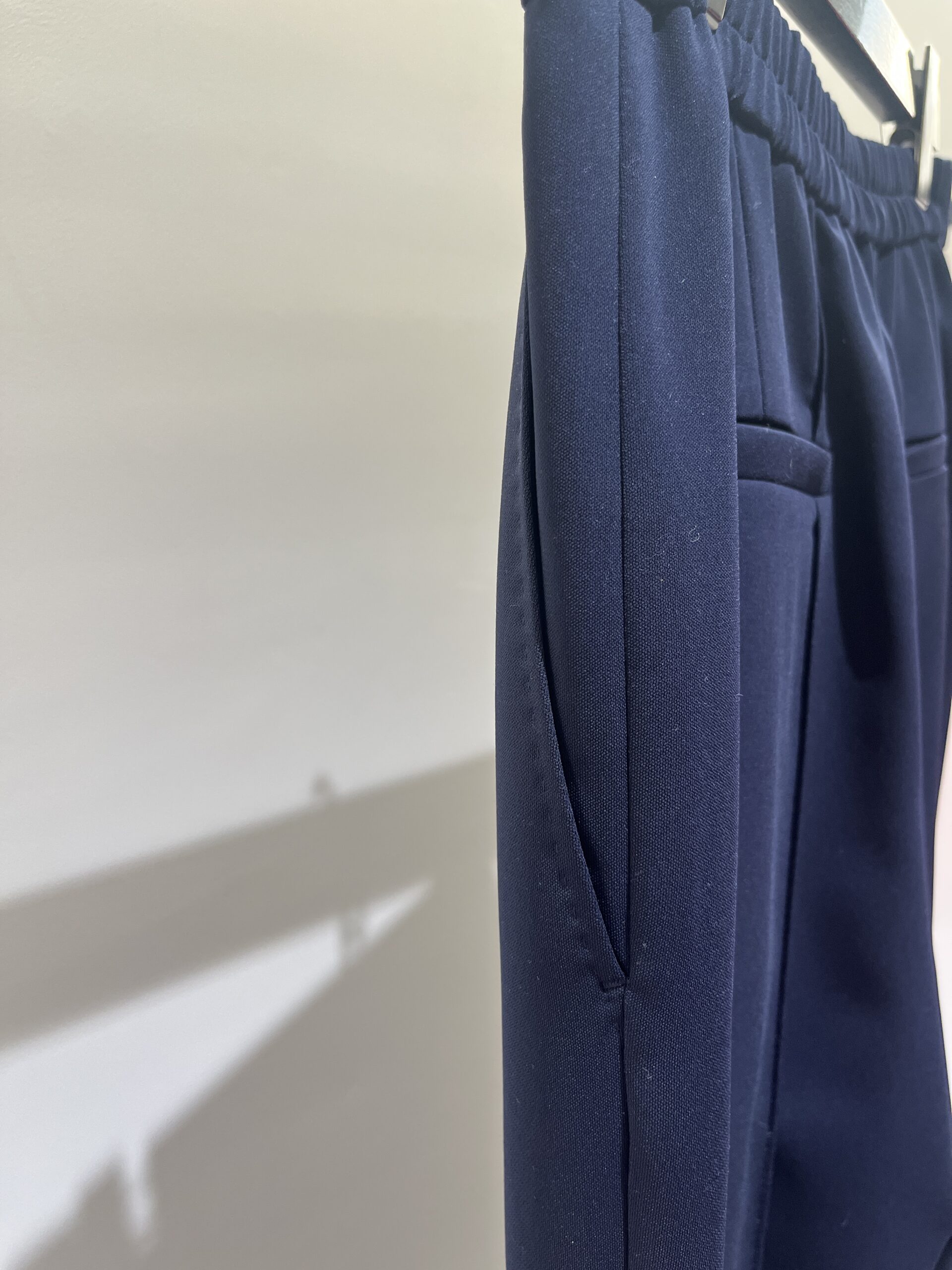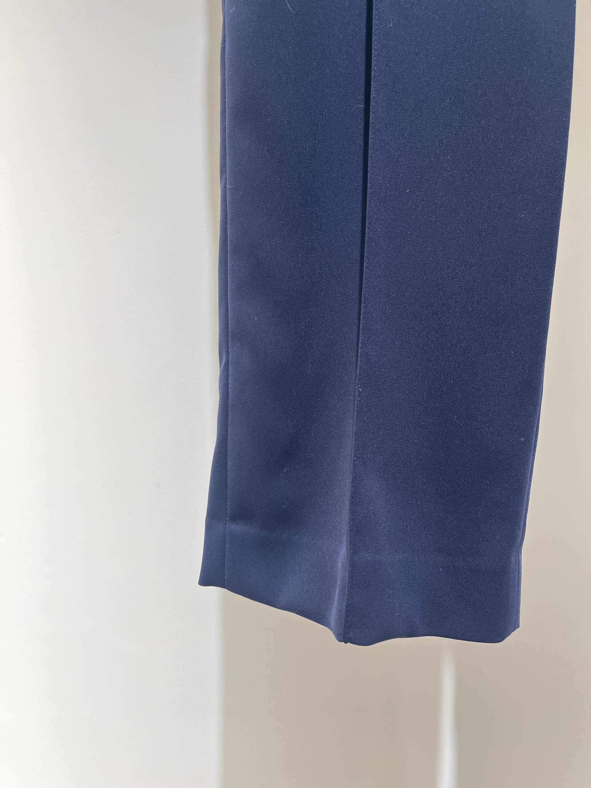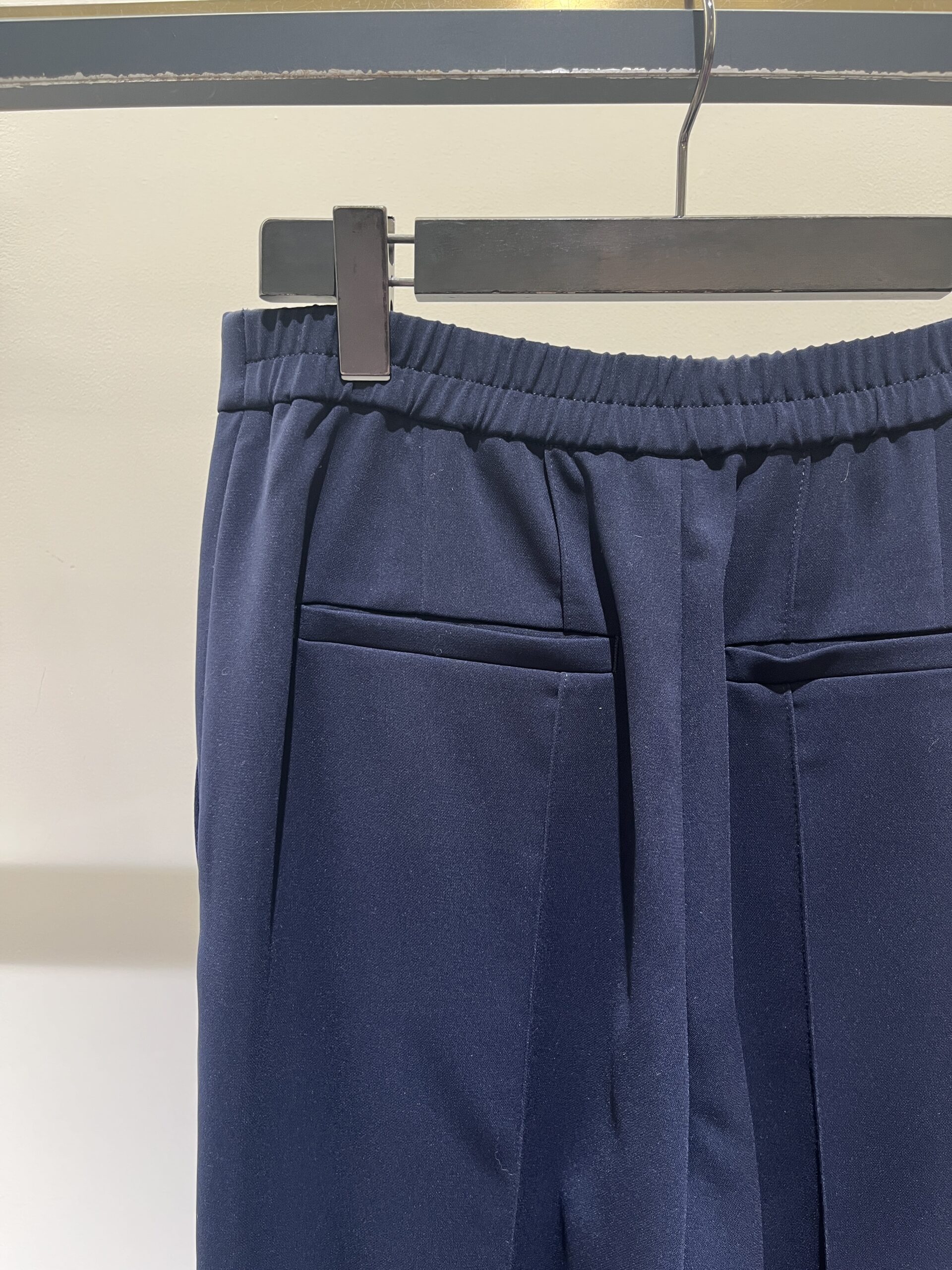 今回選んだのは、ネイビーのノーカラージャケットとレーススカートのセット。 どちらもシルエットはシンプルですが、ディテールの繊細さが際立っています。ジャケットはコンパクトながらストレッチが効いていて、着心地は抜群。スカートはウエストがゴム仕様でゆとりがありつつも、すっきりとしたナローなシルエットです。