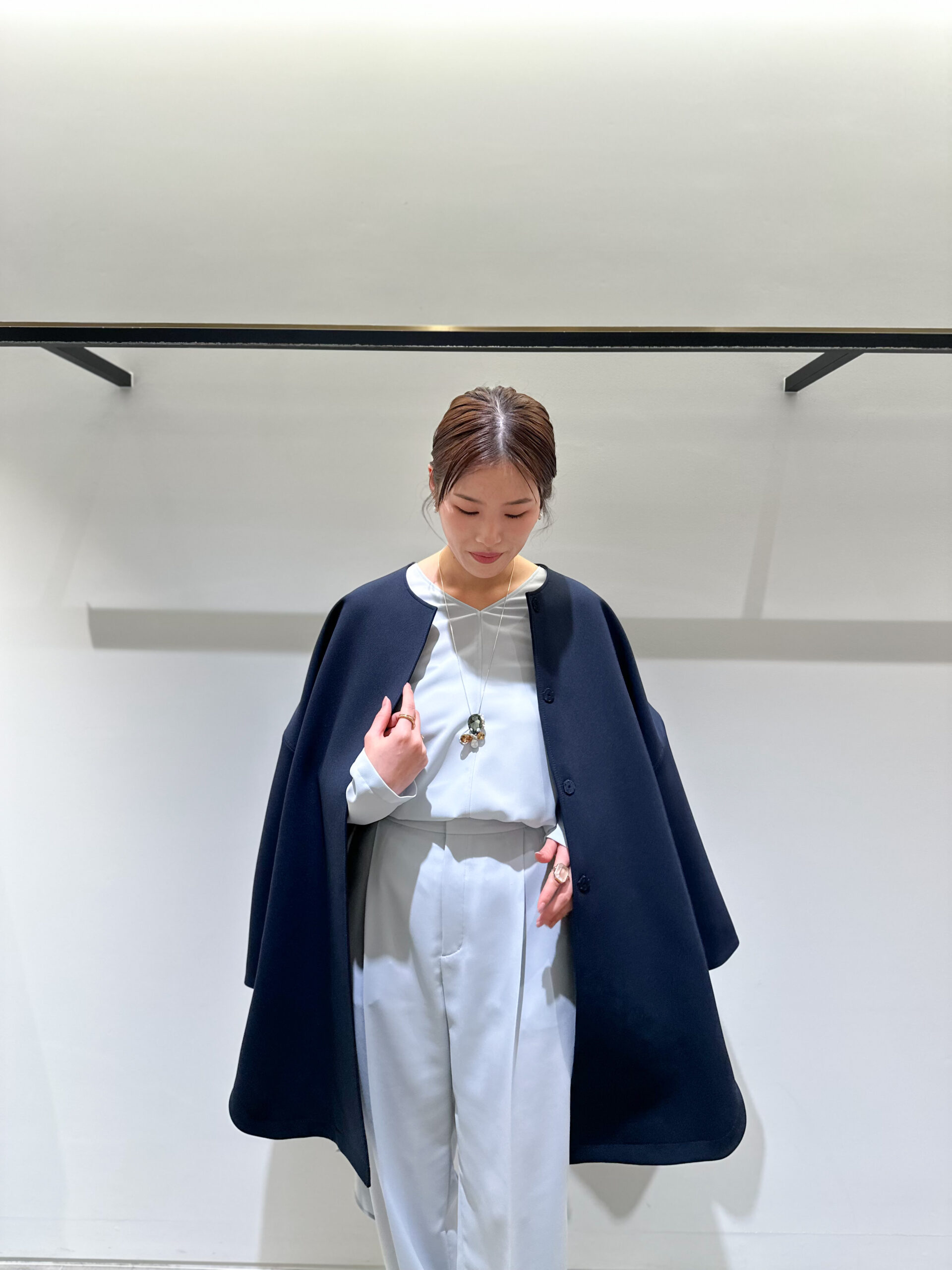 羽織ったコートは、火曜日に登場したあの万能な一着です。どんなスタイルも受け止めてくれる、本当におすすめの組み合わせです」(松田さん)