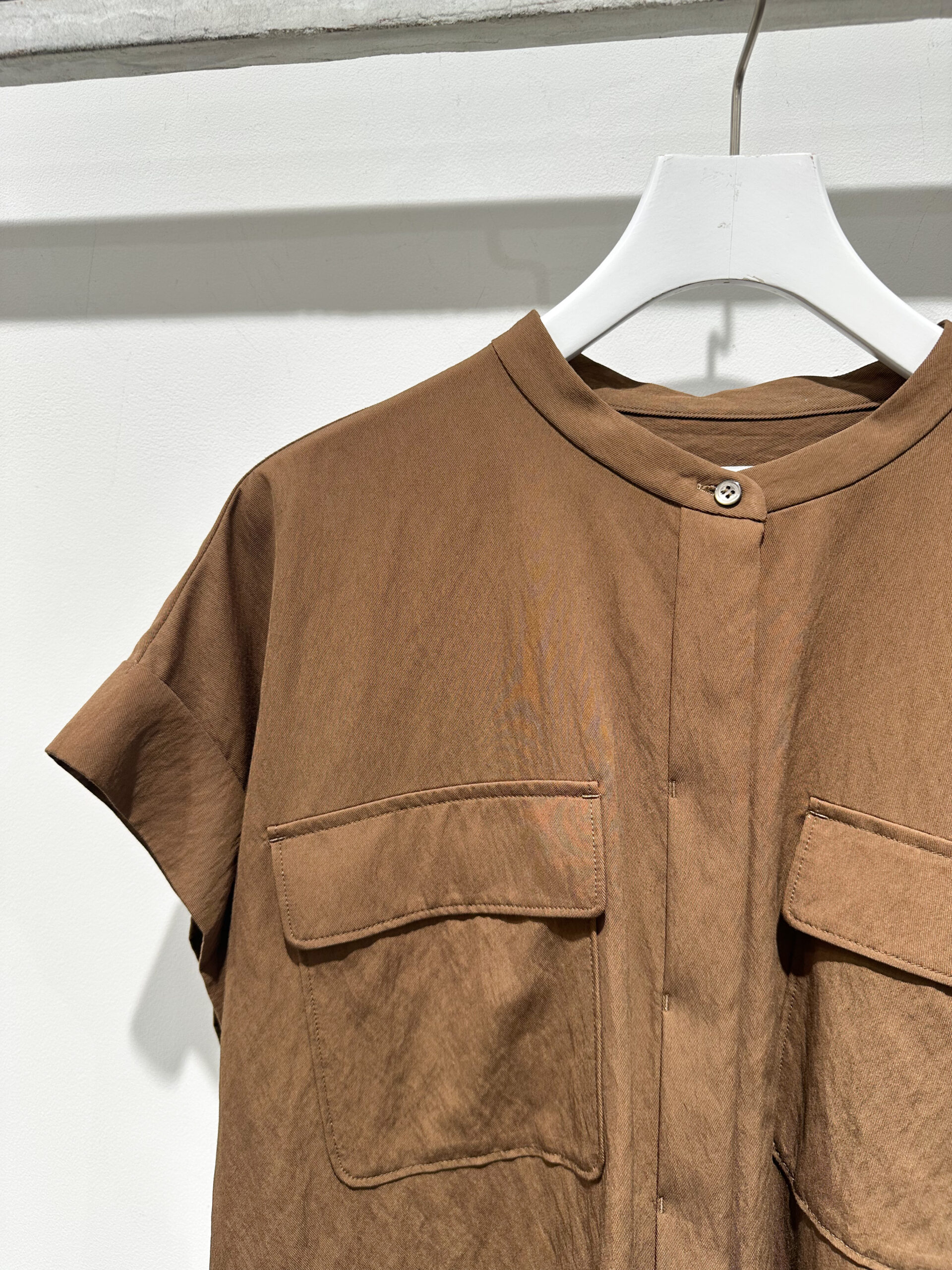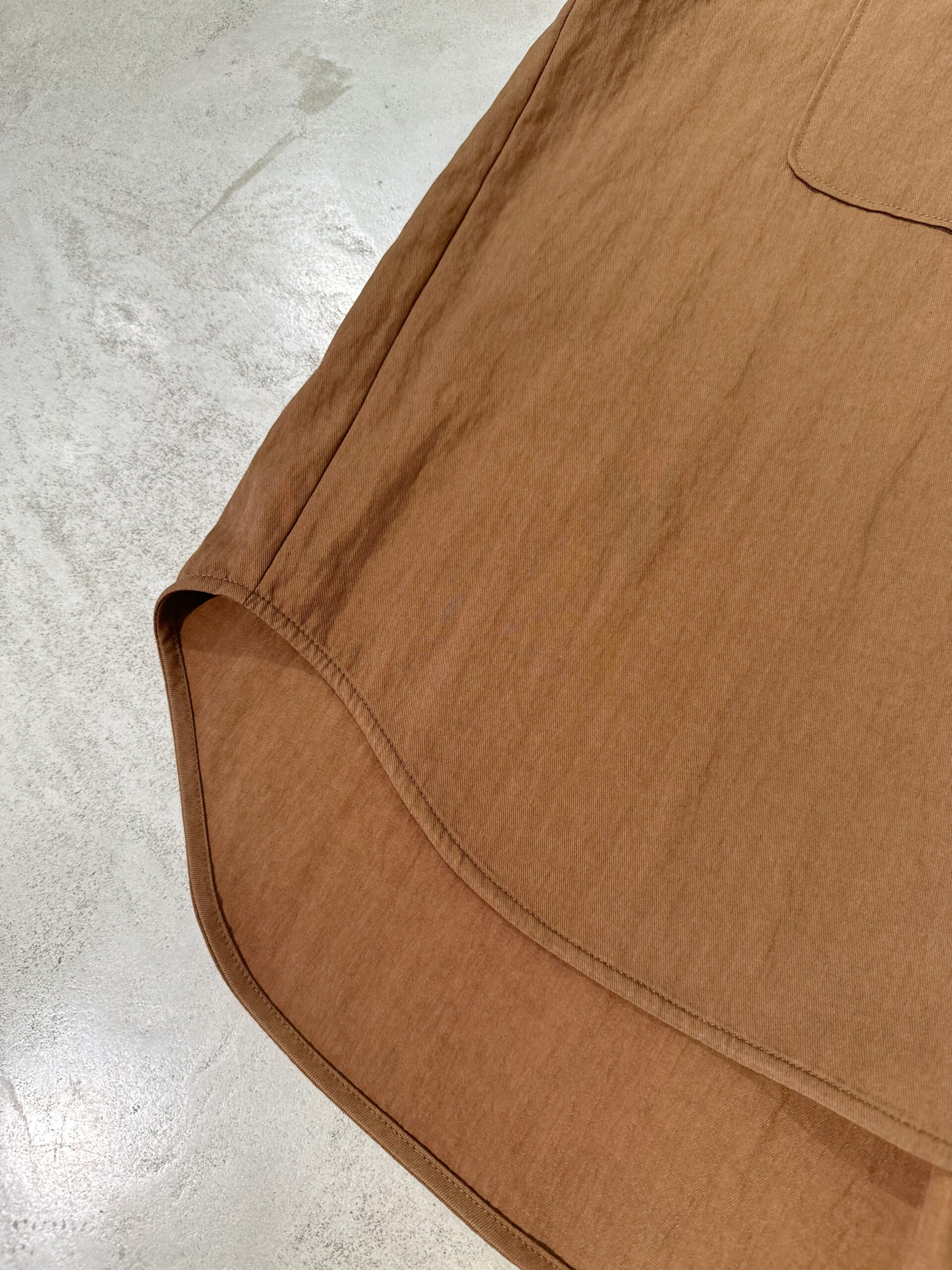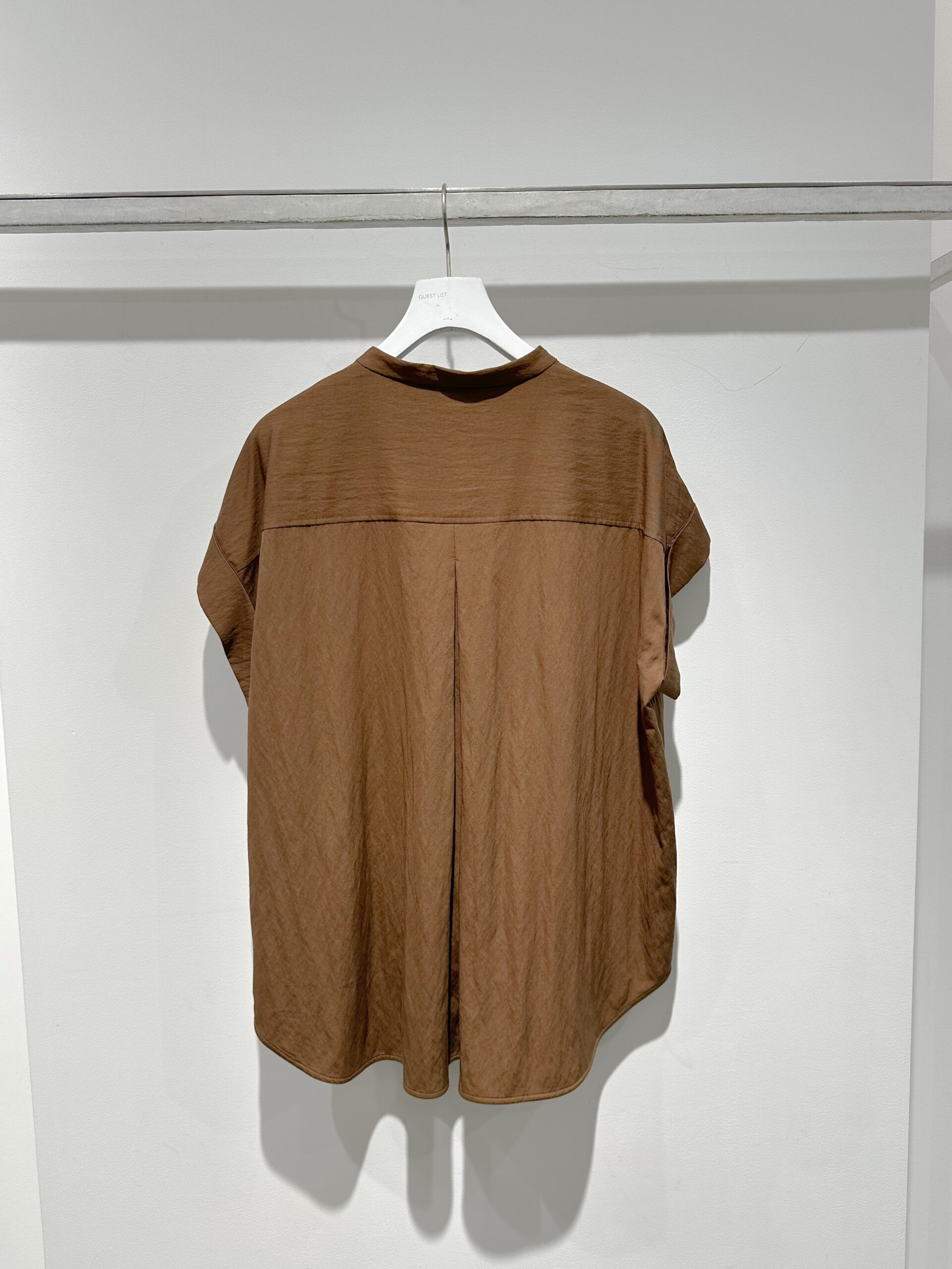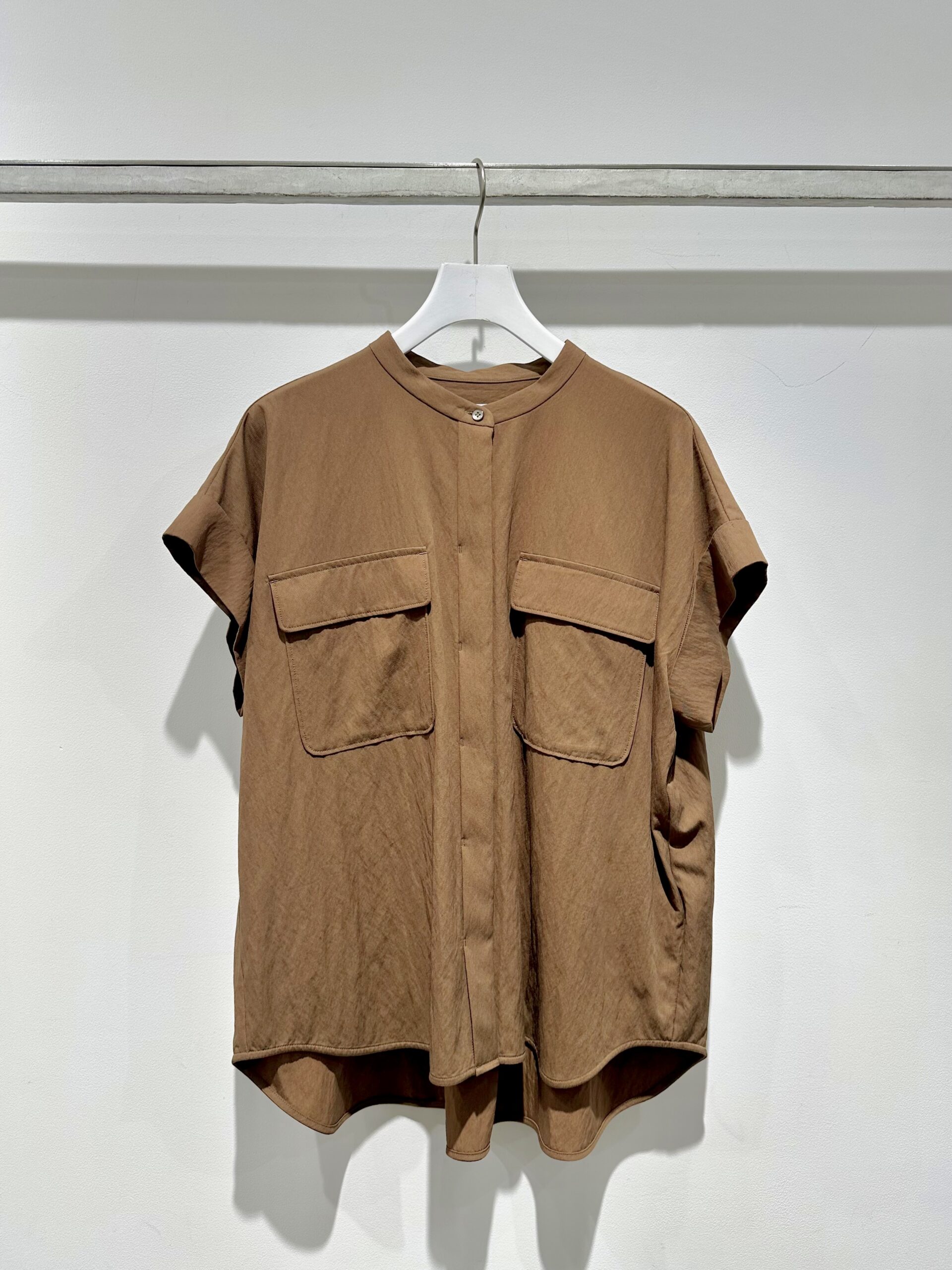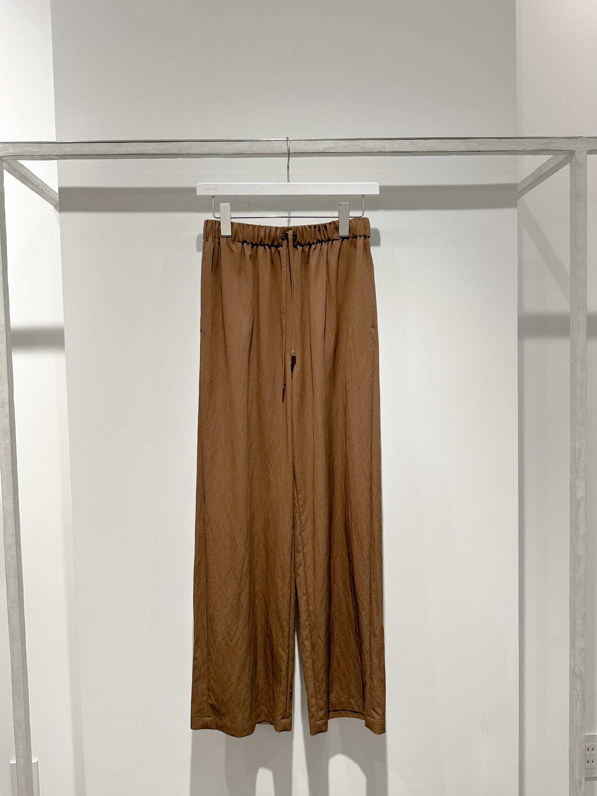 「光沢と落ち感が上品なツイル素材。同素材でブラウス、パンツ、スカートの、3アイテム展開なので、単品使いはもちろんお好みのセットアップにも。