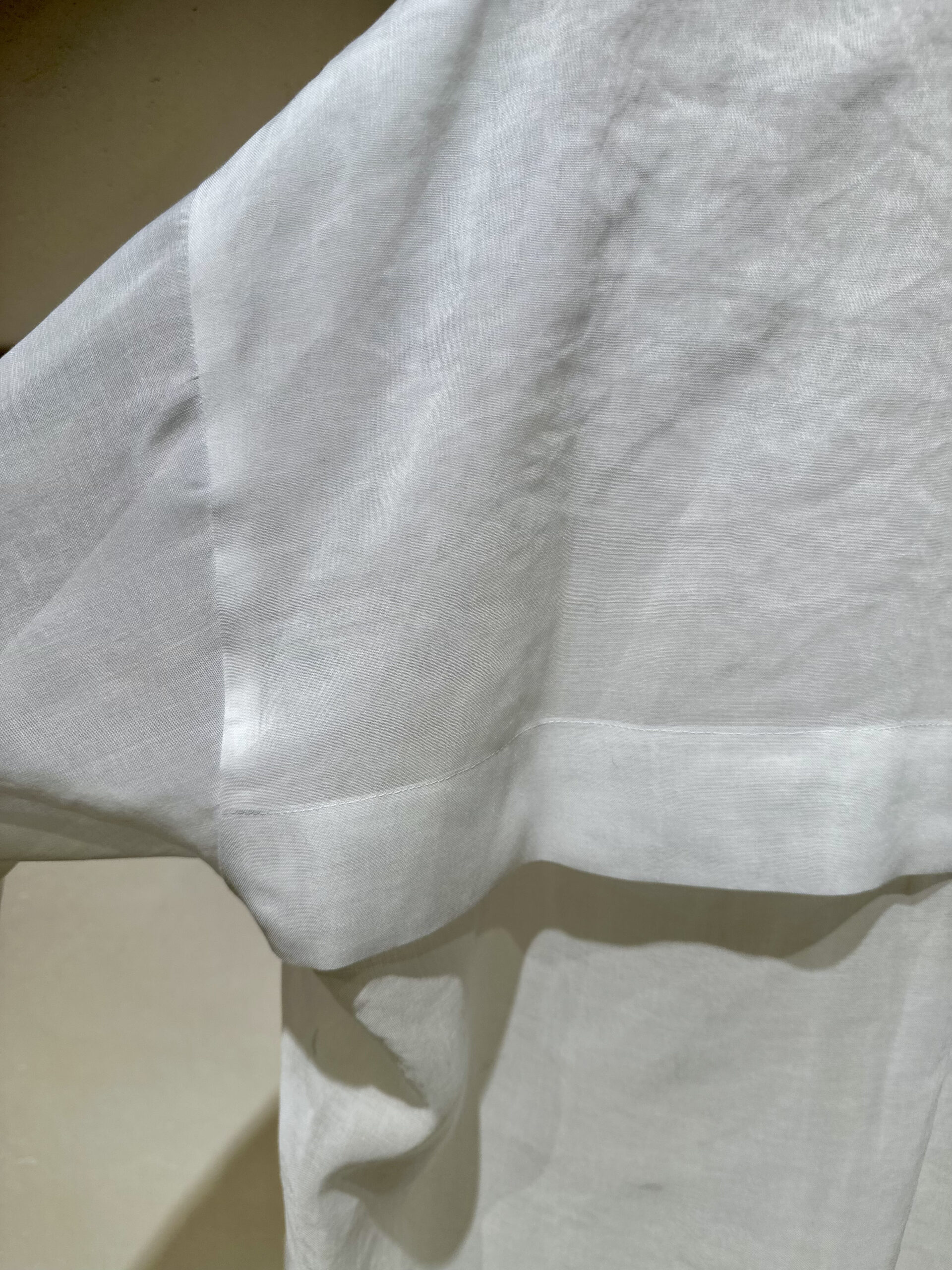 裾をゴムやドローコードで絞らず、あえてシャツのように端正に仕上げた裾ライン。そして、フロントのボタンを隠した比翼仕立て。この細やかなディテールが、カジュアルなアイテムを『大人のための上質な羽織り』へと押し上げているポイント。