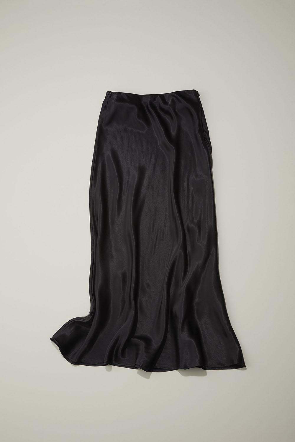 控えめな艶と、しなやかな落ち感が魅力のサテンフレアスカート。光を受けても派手にならず、黒でも重く見えない絶妙なバランスが秀逸。動くたびに生まれる柔らかな揺れが、装いに静かな華やぎを添えてくれます。シーズンを問わず頼れるため、ワードローブの土台になってくれます。