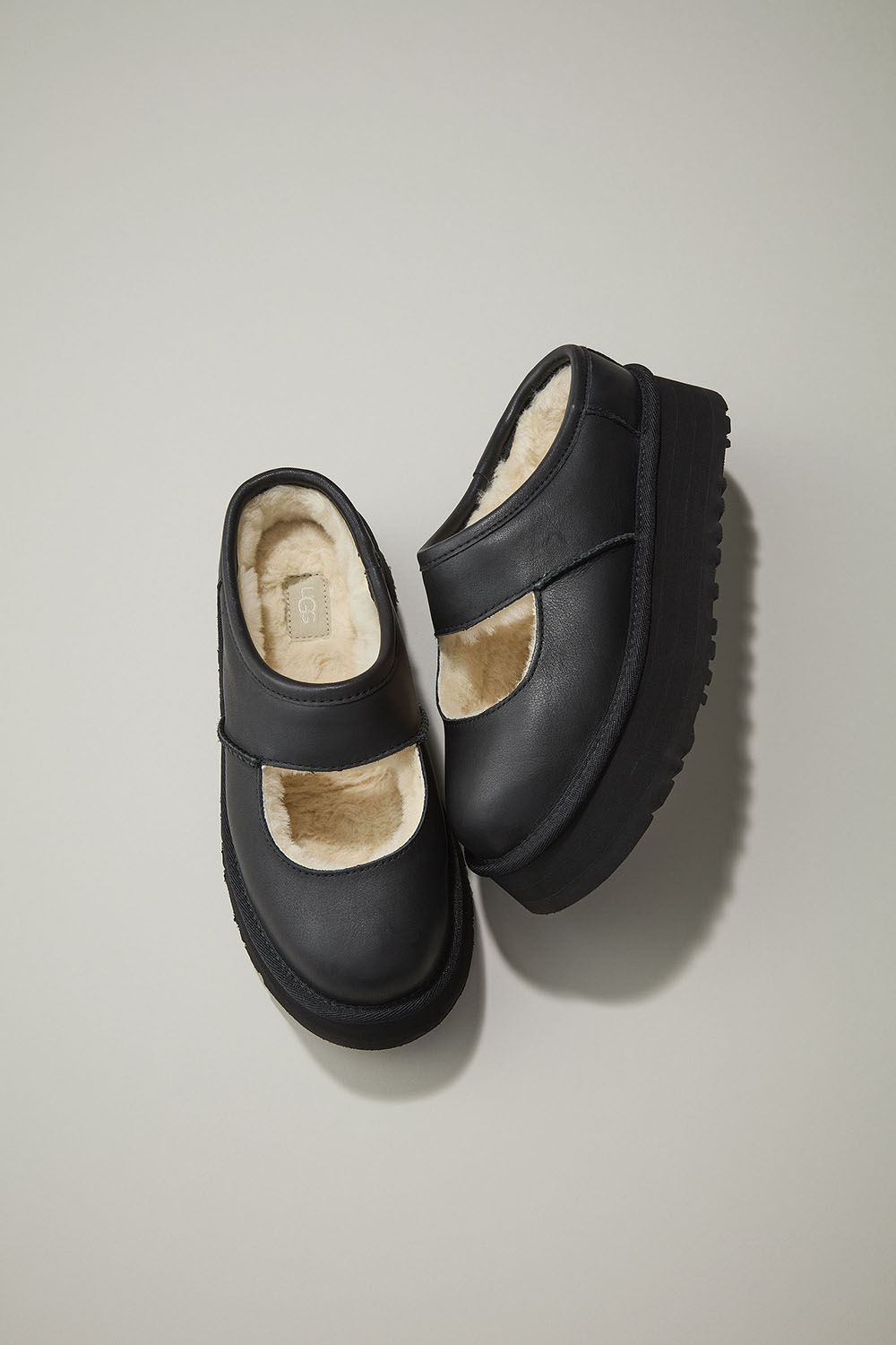 ムートンブーツの印象を覆す、〈UGG〉の新境地。艶のあるブラックレザーとボリュームソールがモードな存在感を放ち、メリージェーンの甘さがスパイスのように効いています。軽やかで快適な履き心地も魅力。一点投入で、コーディネートを更新してくれる一足です。