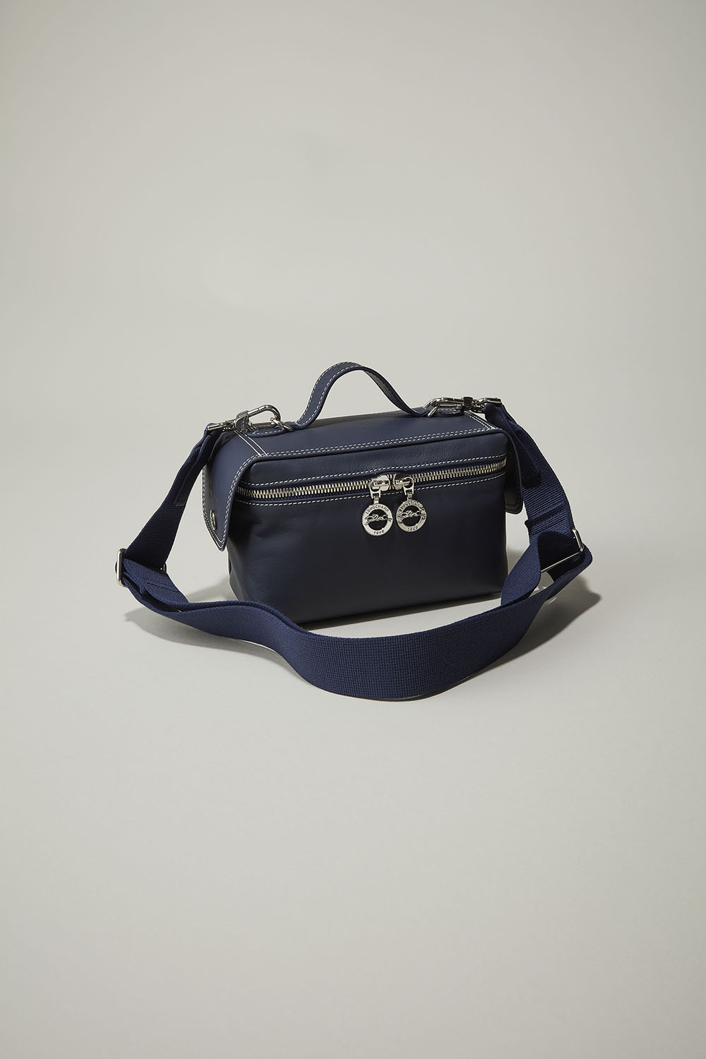 深みのある上品なネイビーに、白のステッチが軽やかな抜けを添える2WAYバッグ。小ぶりながらスクエアのフォルムが端正な印象をつくり、どんな装いにも凛としたバランスを生みます。ナイロンのショルダーストラップも扱いやすく、品よく、軽やかに持てる名脇役。