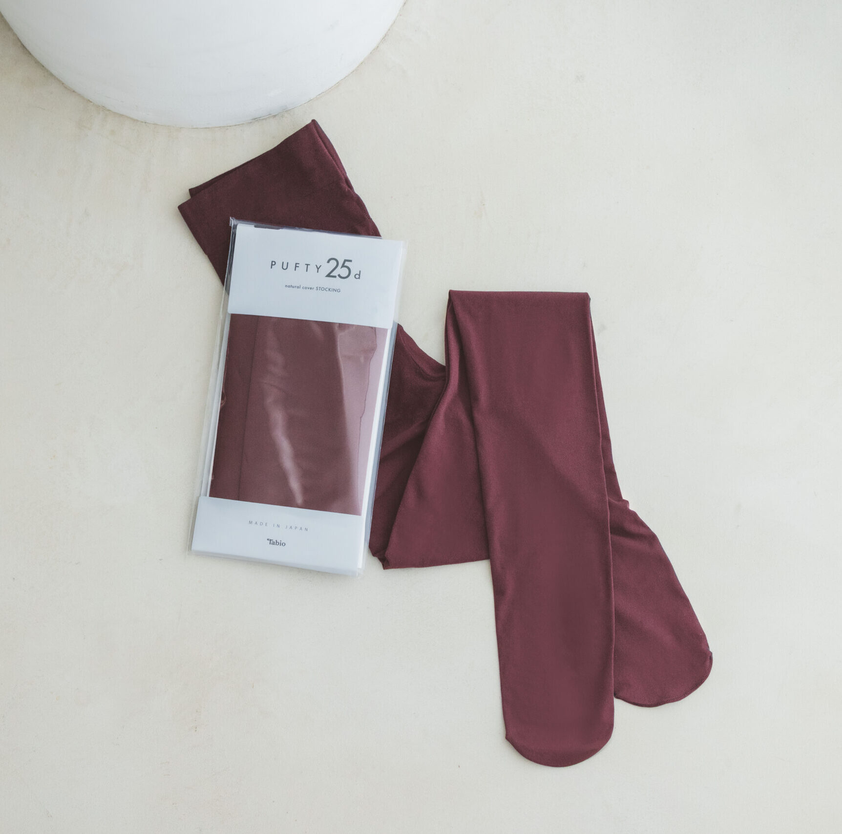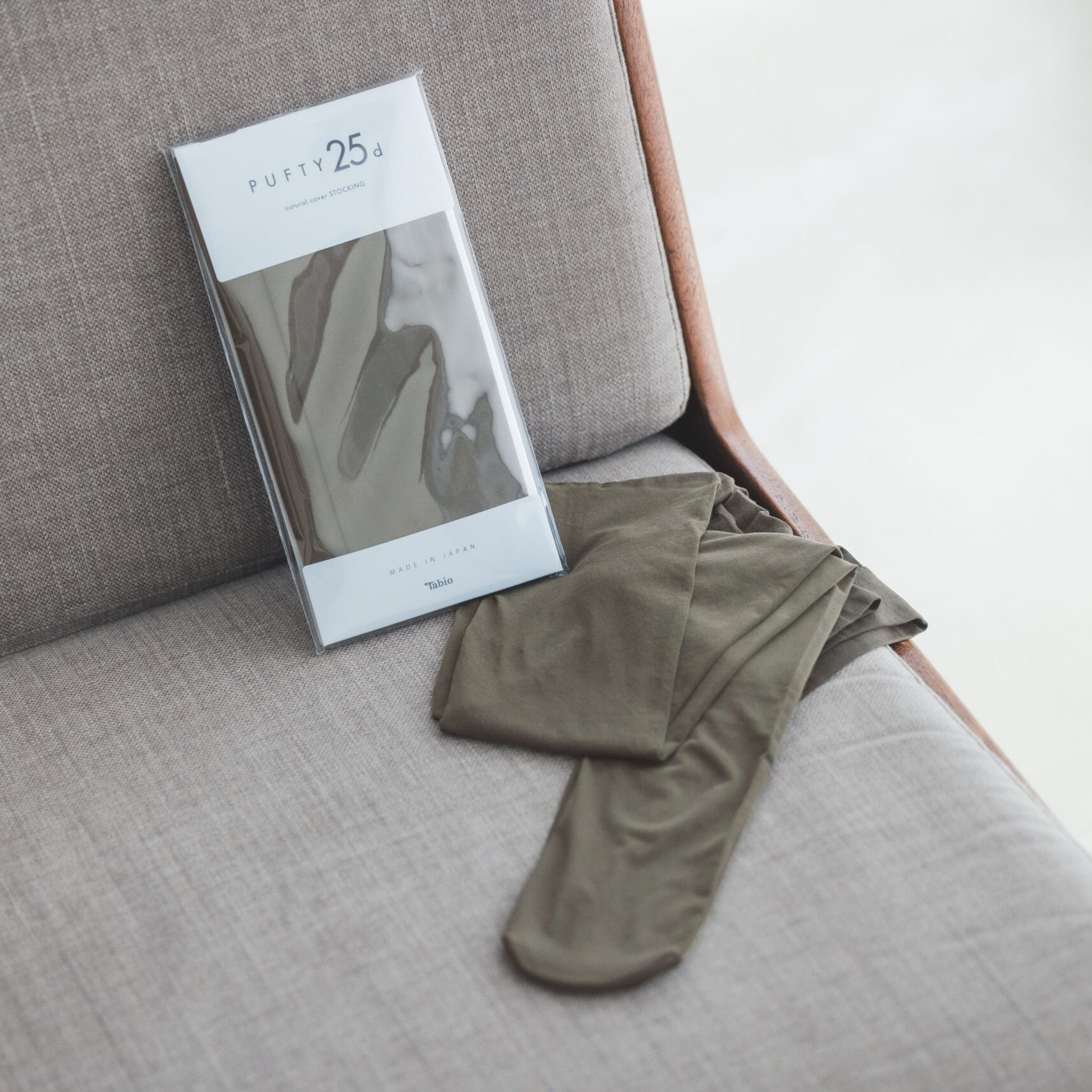 Tabioの“PUFTYシリーズ”は、通常のゾッキタイプで使用する糸よりもさらに繊細な“ハイマルチフィラメント糸”を使用し、なめらかで極上な肌触りを実現。25デニールはその糸で細かく編み立てることにより、肌に吸い付くような優しいフィット感あるはき心地に。ストッキングやタイツはなんだかガサガサする……というイメージを払拭してくれます。さらに、伸縮性がよくイヤな締め付けがないので、長い時間、着用していてもストレスフリー。