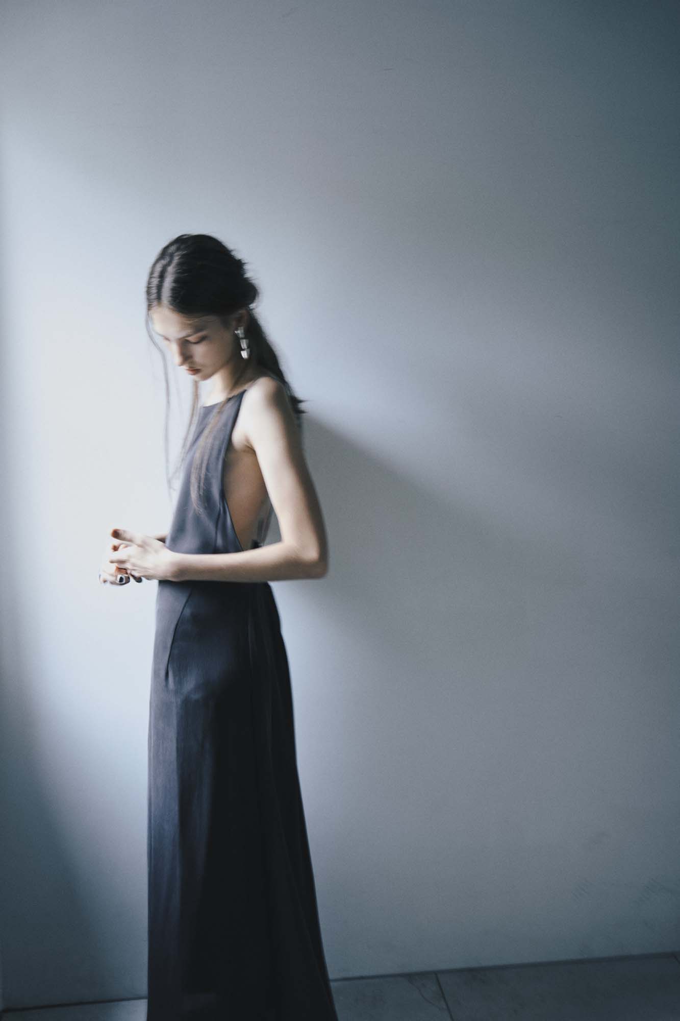 デビューコレクションとなる、2026年の春夏のテーマは「深淵」。深海の静寂や揺らぎを思わせる色彩と質感で構成されています。シルクは水のように滑らかに、リネンは静かな鼓動と響き合い、ウールは肌に寄り添う柔らかさを持つ──深い藍や墨黒といったトーンで表現される静謐な美しさは、内面の深さと調和するエレガンスを語ります。