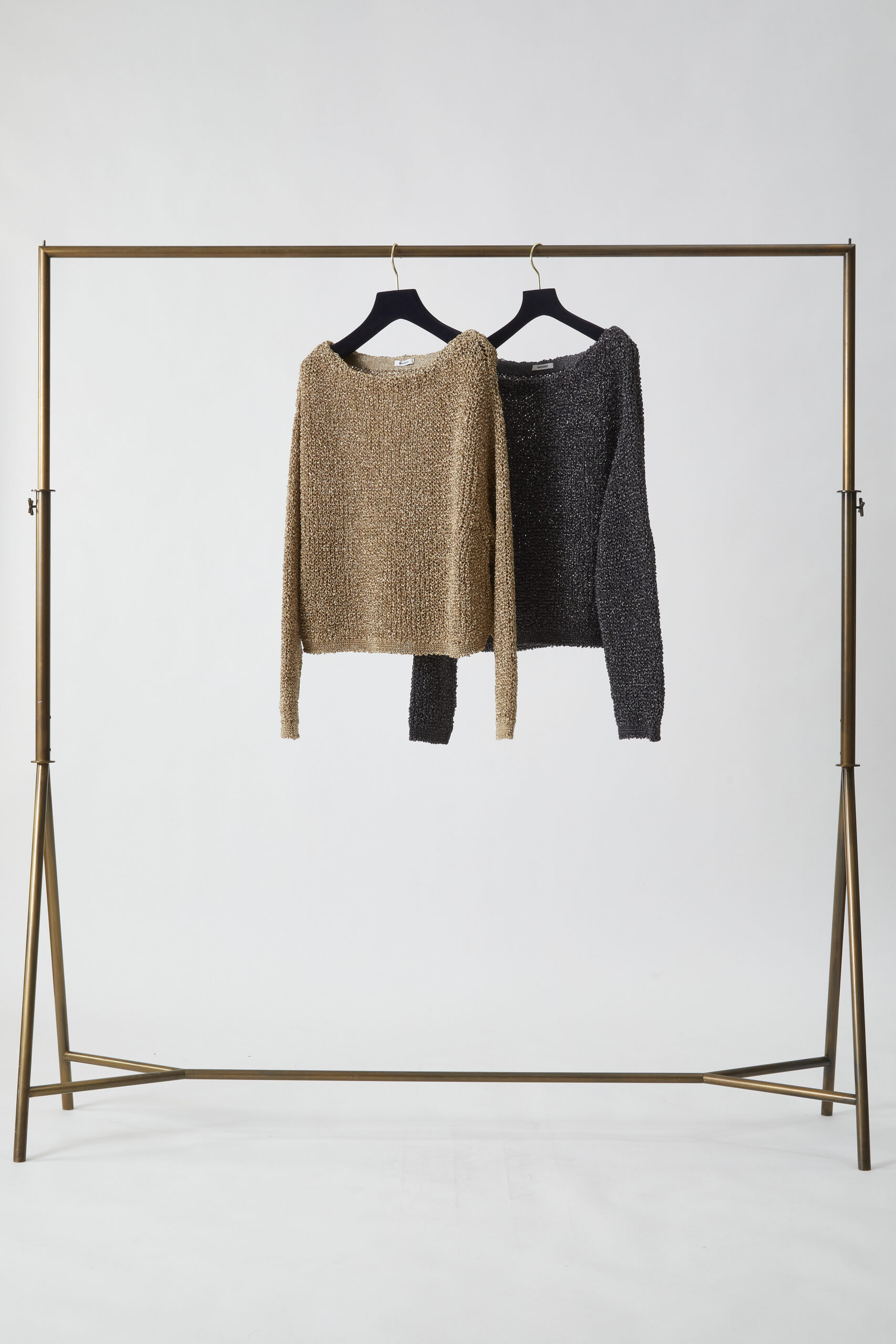 AMARC CHANNEL内でも、大草直子のBEST BUYとして紹介した「ルミナニット」の限定カラーが登場。阪急梅田本店はゴールド、玉川高島屋S・C 南館ではチャコールが展開されるそう。和紙とラメ糸を使用して編みたてた一枚は、驚くほど軽く、そして涼やか。デコルテの美しさを際立たせるボートネックにも大草は惚れ込んでいました。袖や身頃にはゆとりがありながら、やや短めの丈感なので合わせるボトムスも選びません。