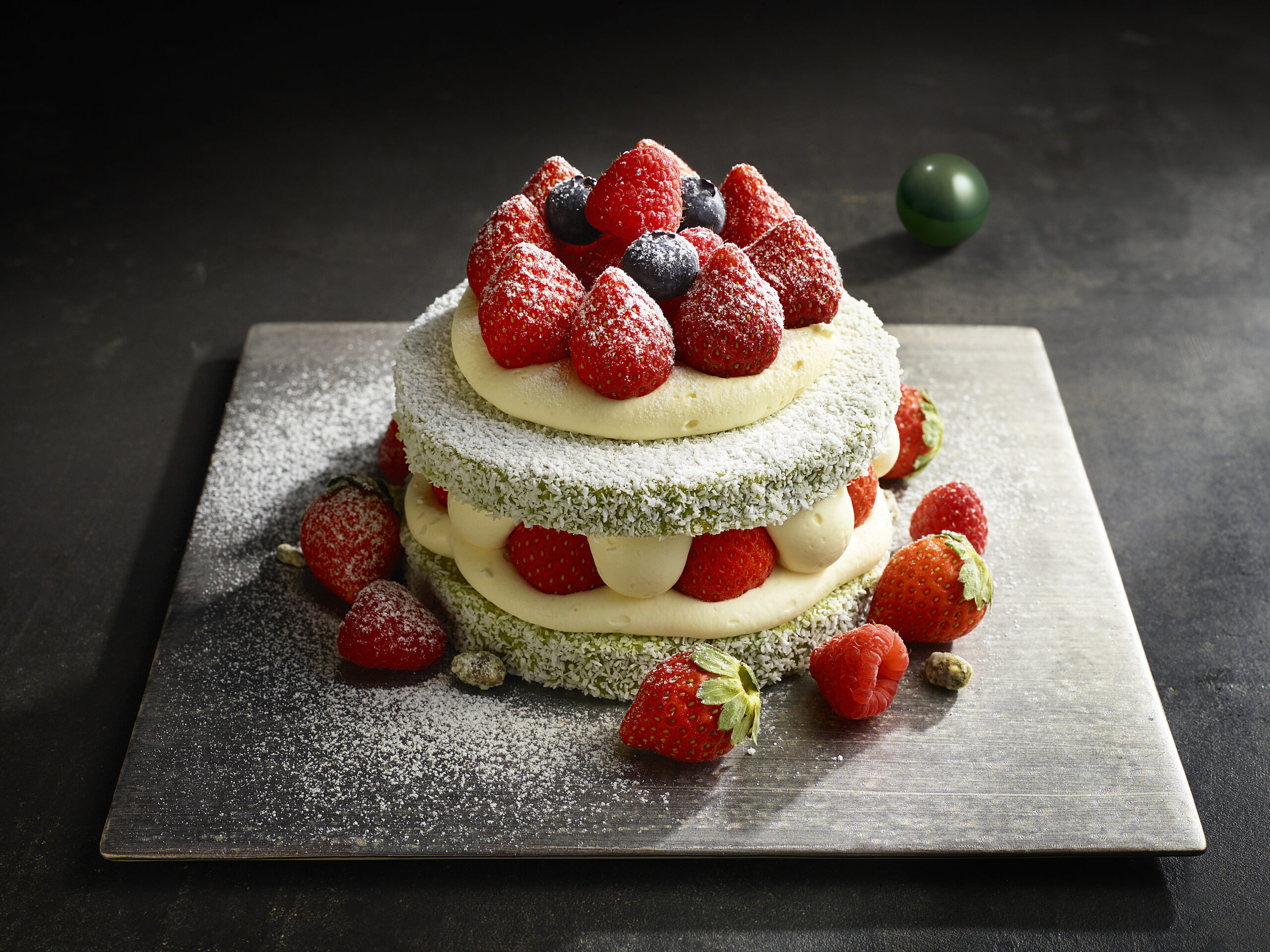 2025年10月2日の開業以来、初めて迎えるフェスティブシーズン。繊細な技と独創性が光るクリスマスケーキコレクションです。オーストラリアの伝統菓子をアレンジした華やかなケーキは、ピスタチオ風味のチョコレートソースを染み込ませたスポンジと、カスタードクリーム、クロテッドクリームを合わせたクリームを使用。甘酸っぱいイチゴとのバランスも絶妙です。