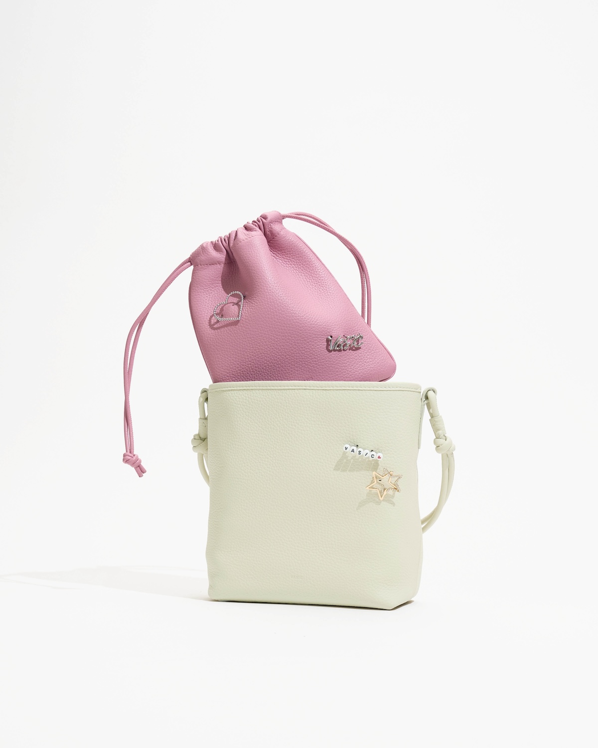 お出かけの小さなパートナーとして輝くドローストリングバッグ「Tye」。アーカイブレザーに光をあて、新たな魅力を引き出したエシカルな商品です。バッグの前面にはブローチ用の穴が2箇所あり、遊び心の溢れるアイテムに。紐の長さも調整可能なので、肩にかけたり、斜めがけにしたりと異なるニュアンスを楽しめます。5色展開。
