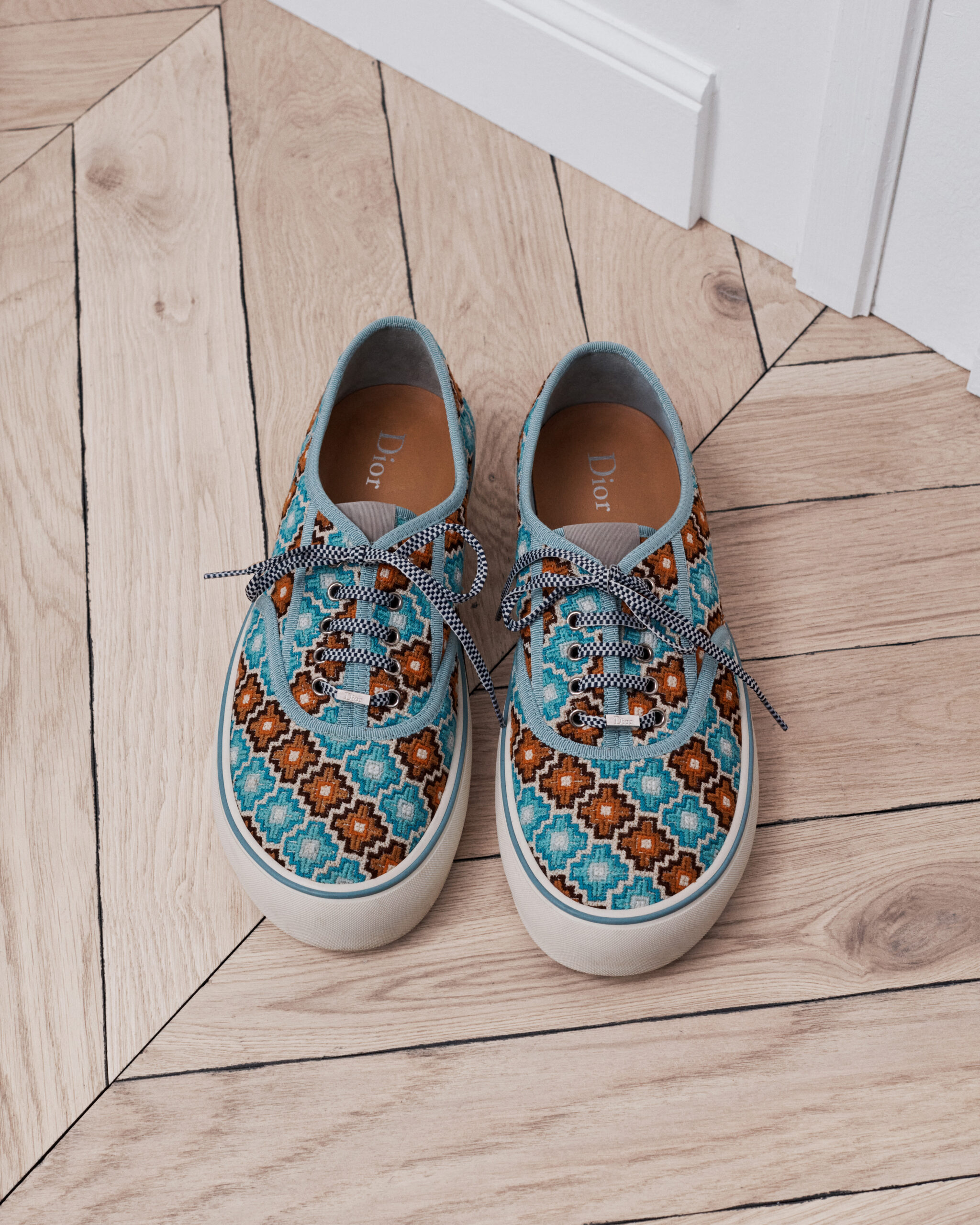 パビリオンオープンに向けて、限定アイテムも多数登場しています。鮮やかなブルーの「ディオール ブックトート」や2つ折りカードホルダー。グラフィカルな刺繍が目を引く「ディオール ソルトウィンド」スニーカー。そのほか、フェミニンなボウと18世紀の建築のモールディングから着想を得た新ライン「ディオール メダリオン」のアイテムも。滑らかなスムースカーフスキンのレザーアイテムには、優雅なモチーフがエンボス加工で施されています。