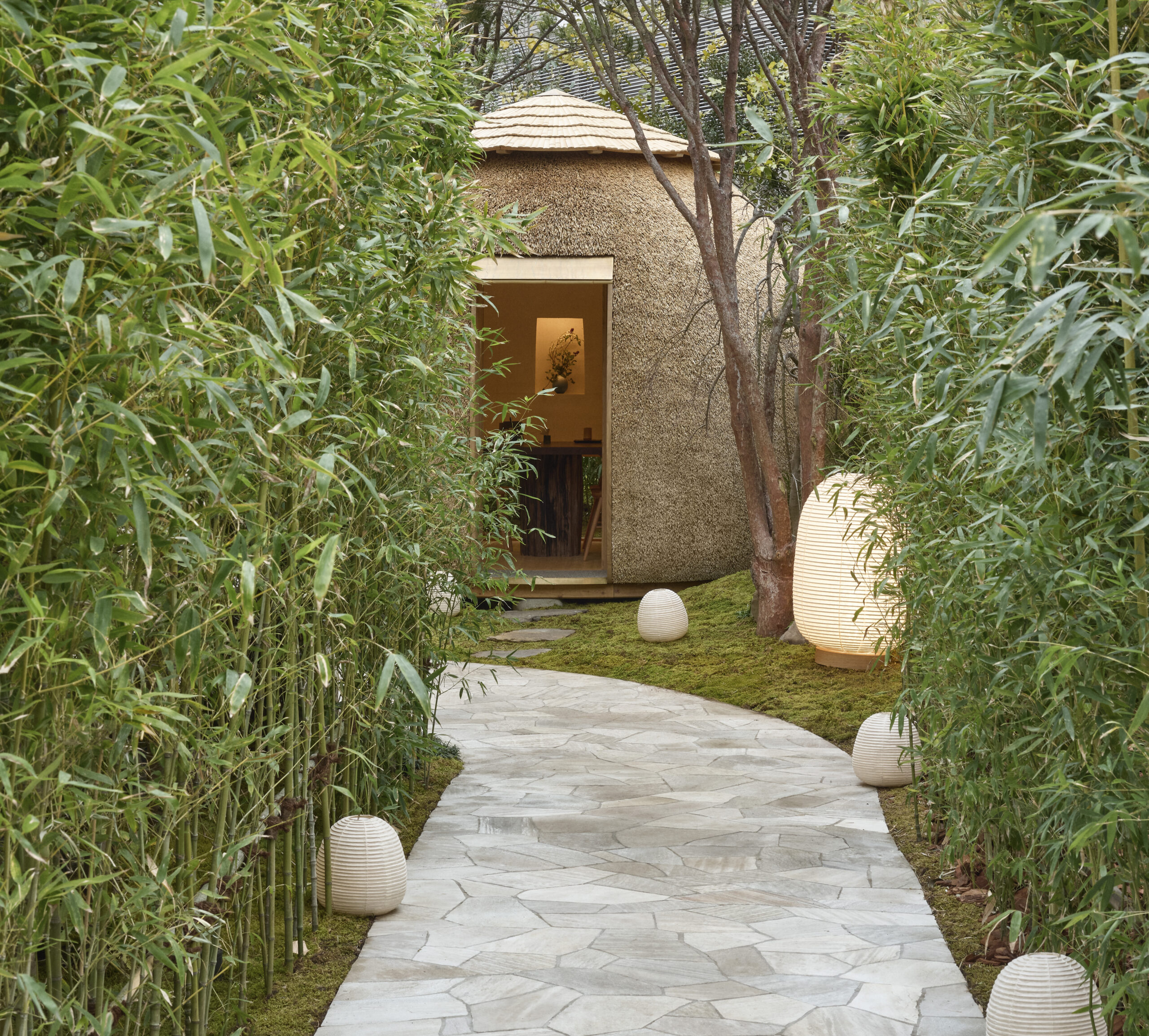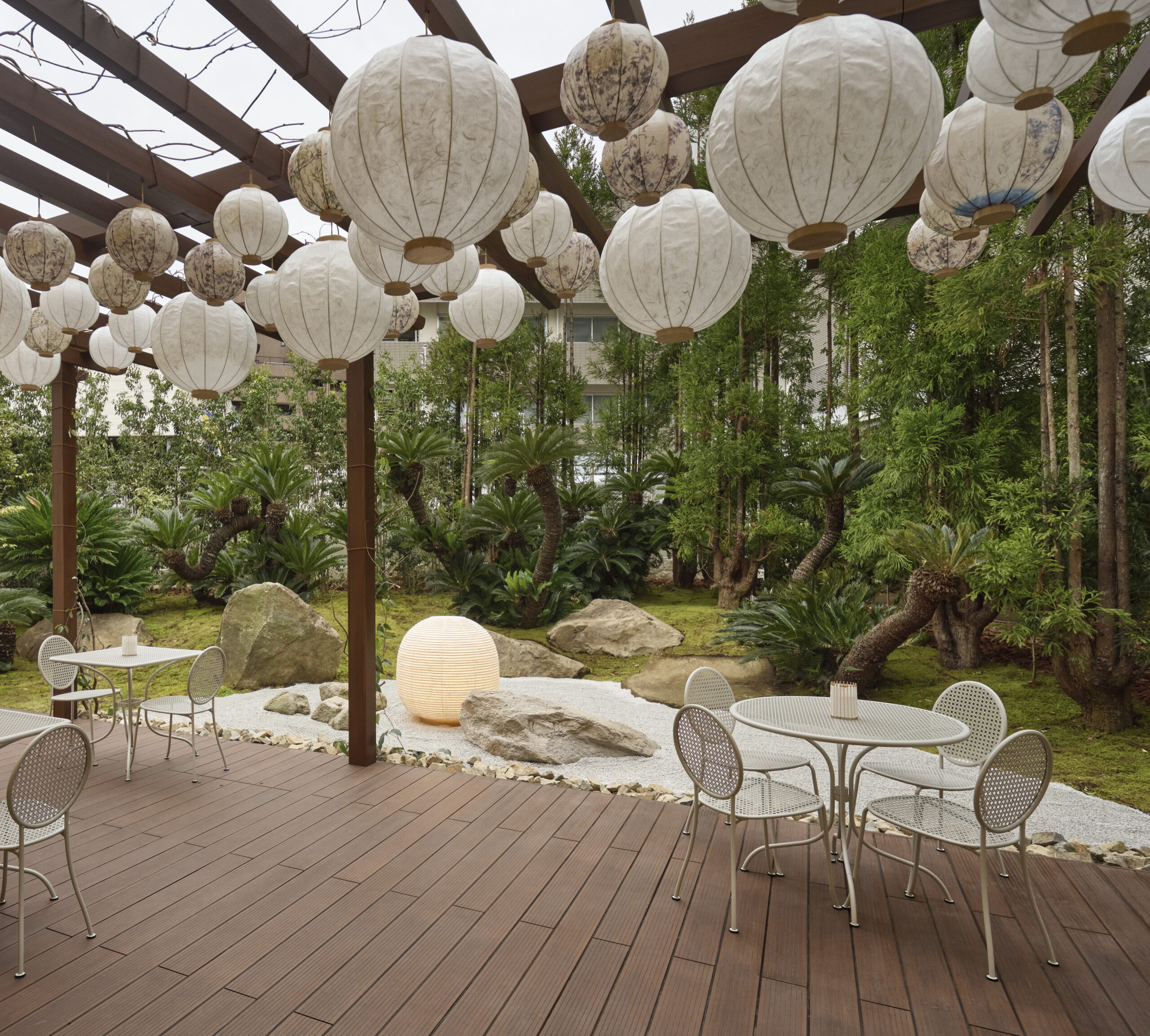 黄金の建物を囲むのは、日本の著名な「プラントハンター」である西畠清順氏によって手がけられたコンセプチュアルな庭園やテラス。ガラス製の鯉が泳ぐ池や、豊かな植栽が点在し、伝統と革新を融合させたポエティックなランドスケープに。庭園は希少な植物で構成されており、植物の驚くべき豊かさを再発見しながら、自分自身と再びつながることができるように設計されています。