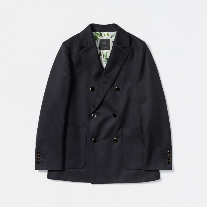 凛としたハリと艶を湛えたウールモヘアのブレザー。ダブルブレストの端正な顔立ちながら、柔らかな落ち感とパッチポケットが程よいリラックス感を演出します。袖を通すたび、裏地に配した繊細なアートプリントが心を充足させる一着。伝統とモダンが共鳴する、ブランドの矜持を纏う贅沢を。