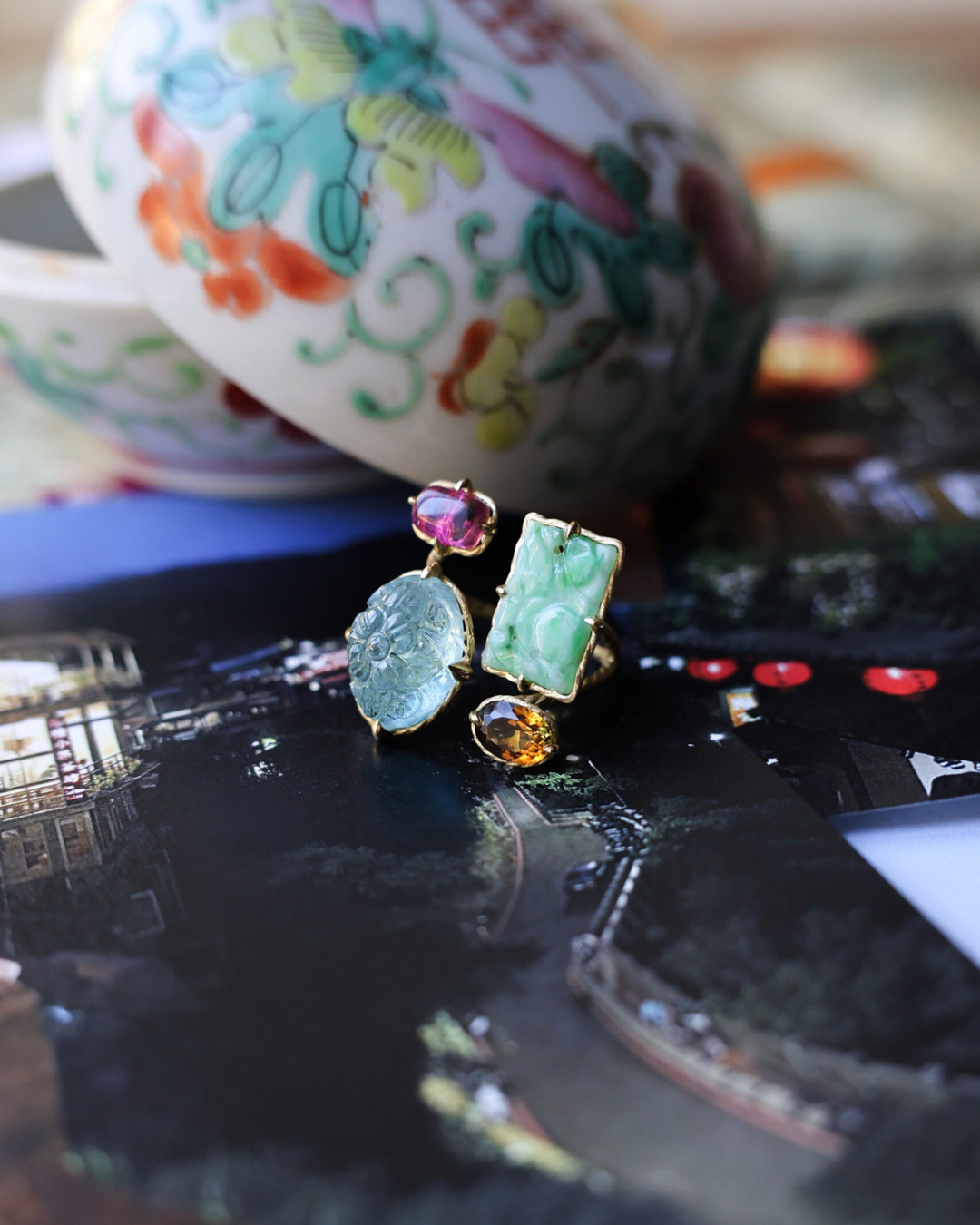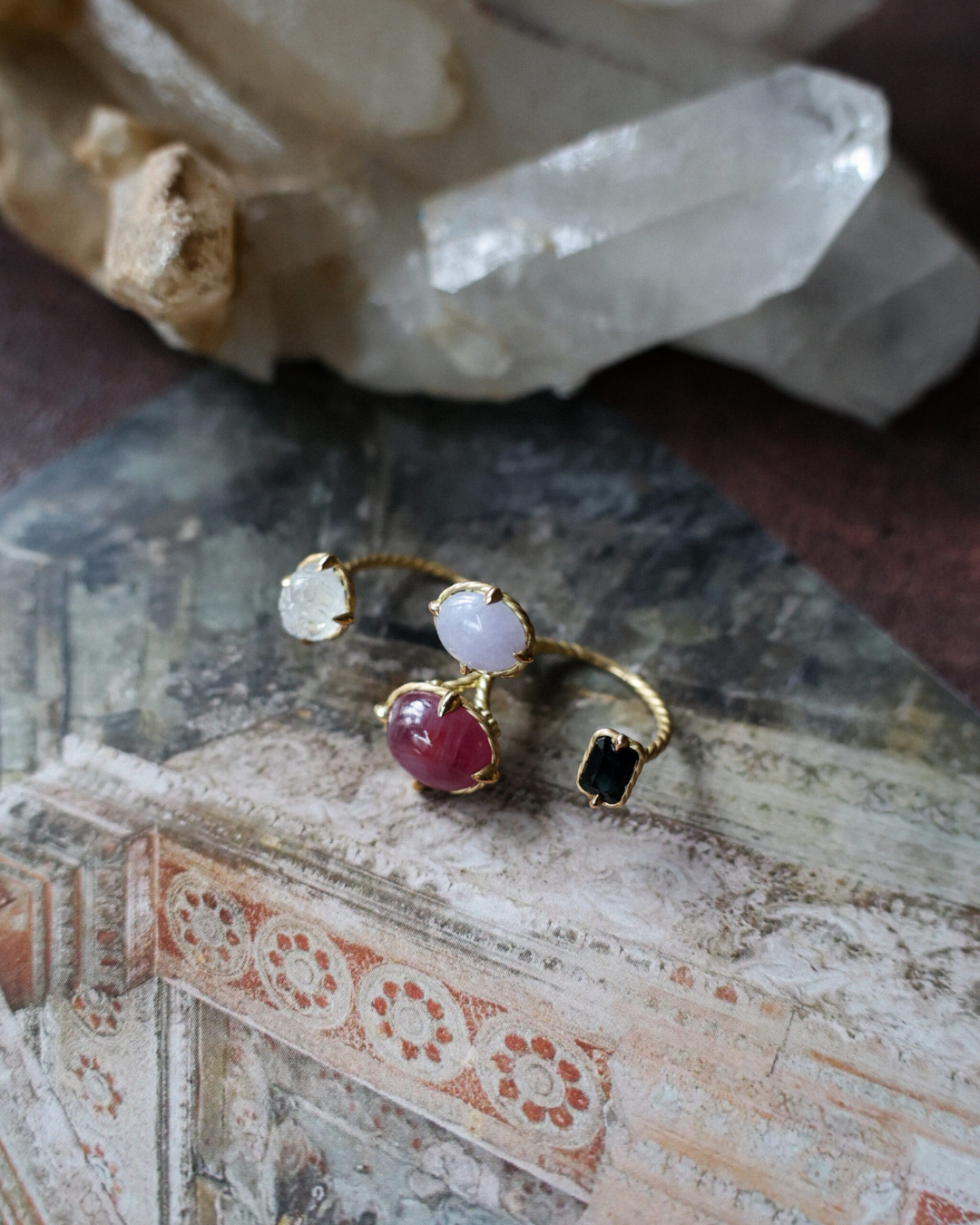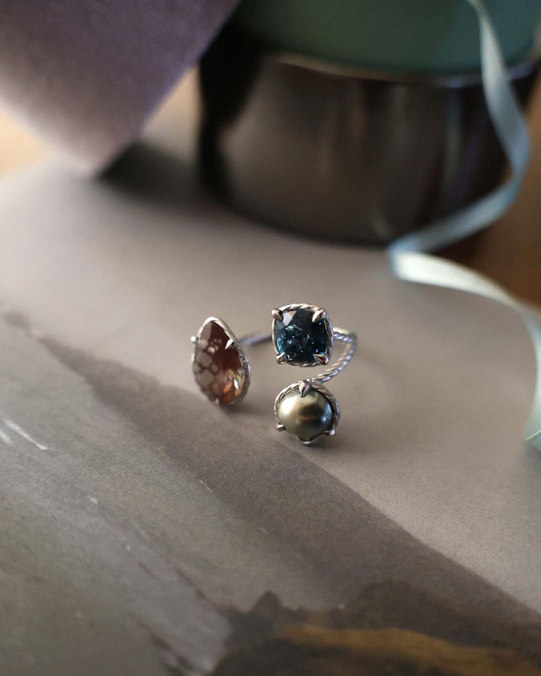Bon Magiqueが心惹かれるままに集めた数々の天然石の中から、ご自身のLandscape(内なる風景)に共鳴する2~4粒の石をお選びいただきます。その後、デザイナーと共にリングのデザインや地金(K18YG/K10YG/Pt900/SV925)を具体的に決めていきます。
