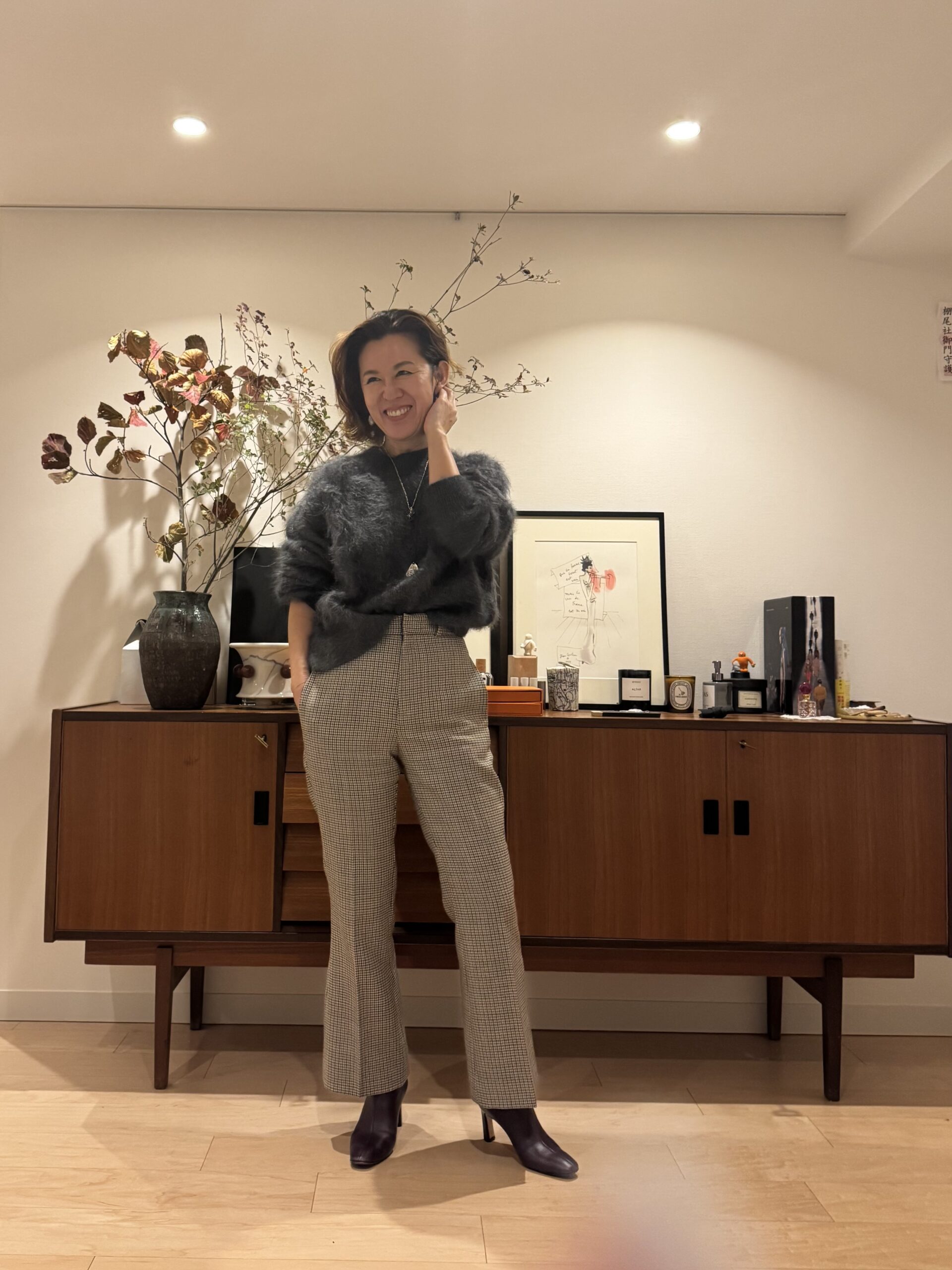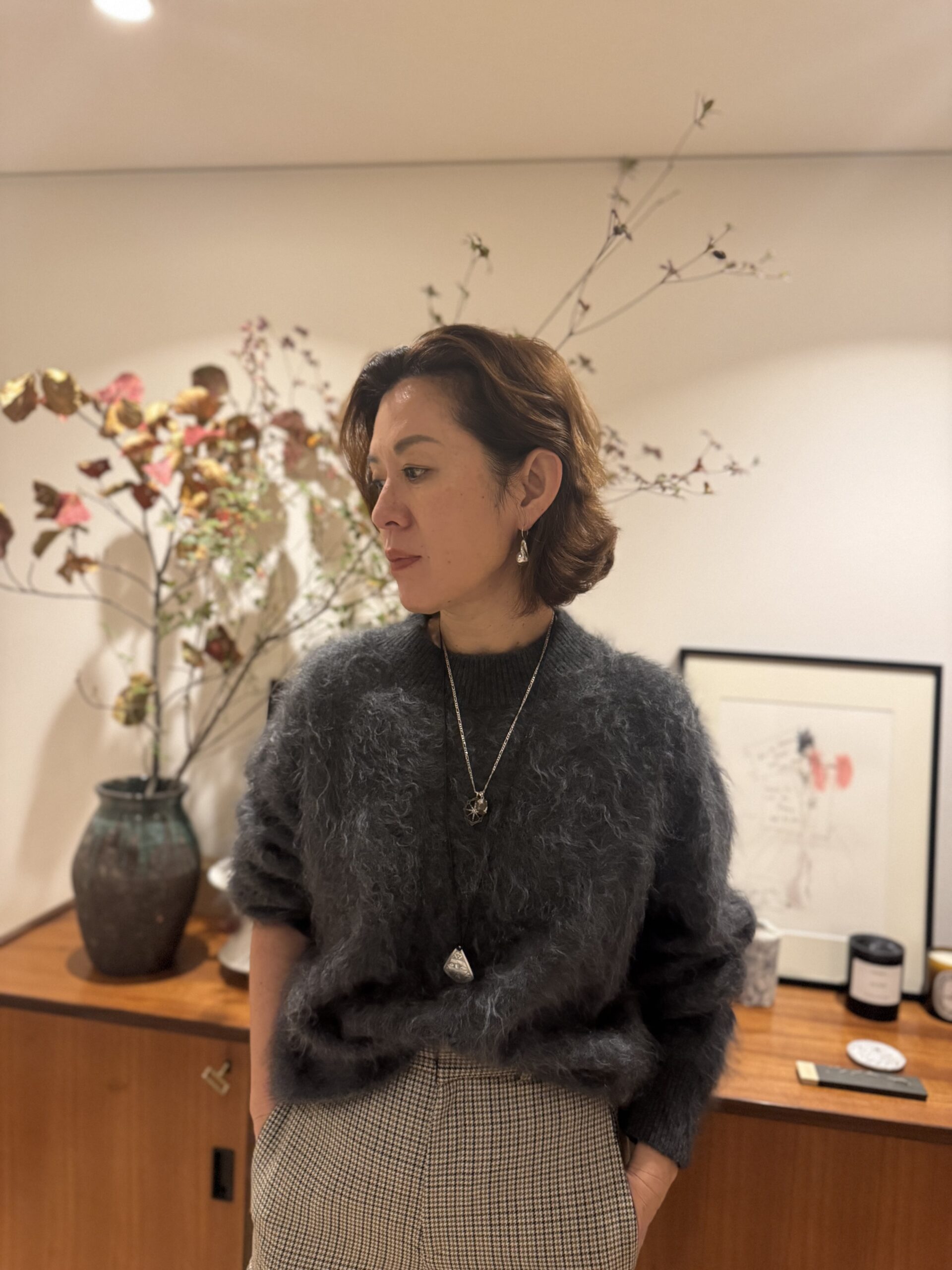 気温がぐっと下がった、AMARC RADIO STATIONの収録日。無類の寒がりである大草編集長にとって、こんな日はもう「ニット一択」。毎年一枚ずつ買い足している、カシミヤファーニットを真っ先に手に取り、合わせたのは、ガンクラブチェックのパンツ。素材の心地よさや何度も選びたくなる理由は——ぜひ、声で。